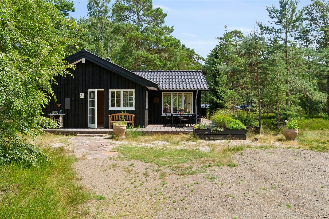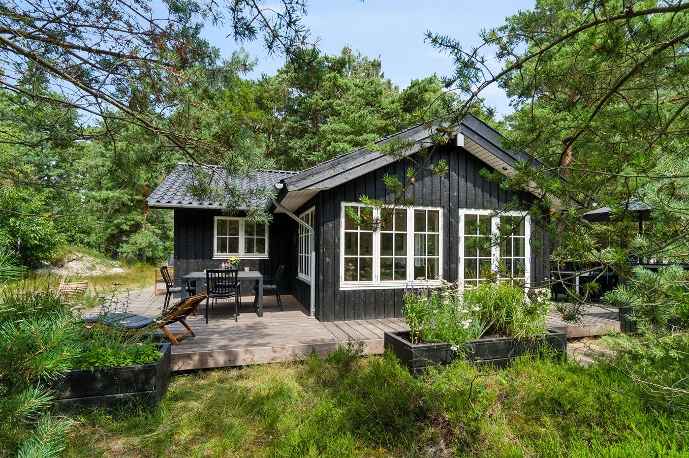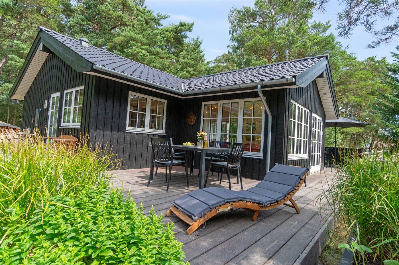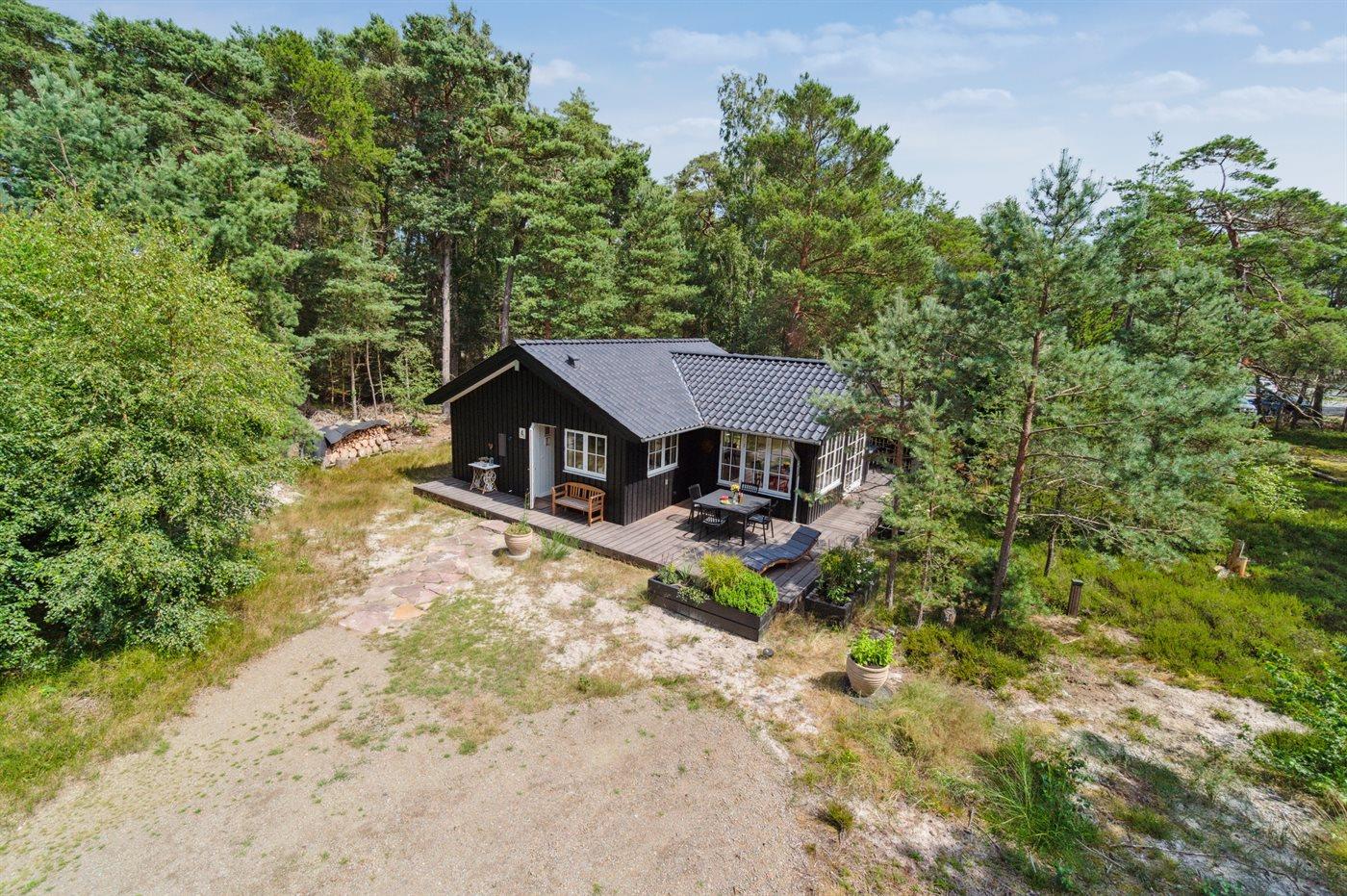 Godt design og god smag kendetegner dette velindrettede feriehus i udsøgt kvalitet med en nøje afstemt moderne skandinavisk møblering. Sommerhuset ligger på en stor åben fyrretræsbevokset naturgrund - tæt på restaurant, iskiosk og burgerbar. I højsæsonen er der også et udsalg med daglige fornødenheder ved Dueodde Vandrerhjem, der desuden tilbyder adgang til en lille, men populær svømmehal. I nærheden er der en 18 hullers golfbane.