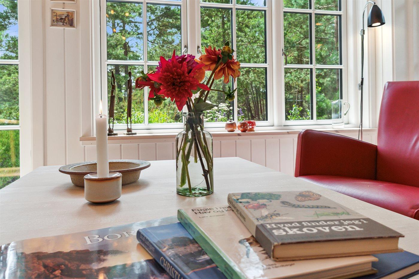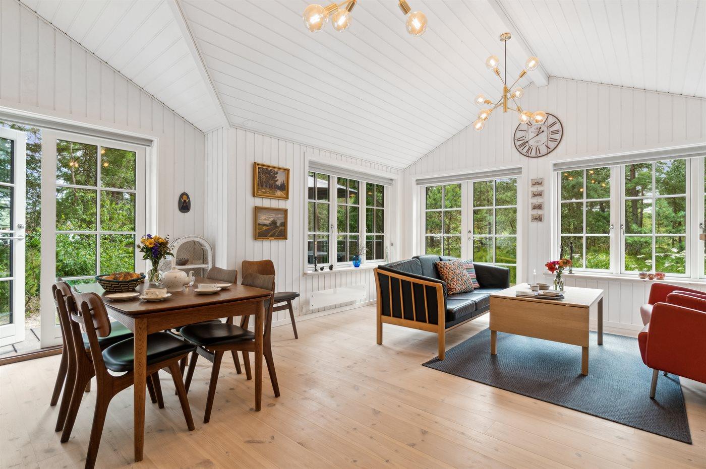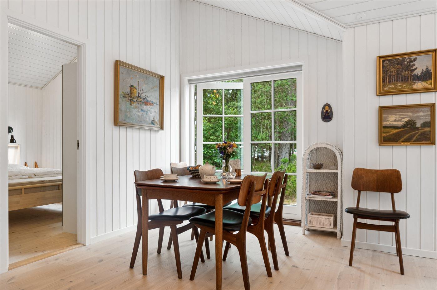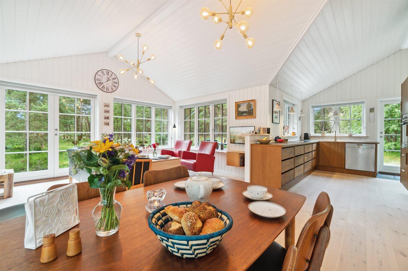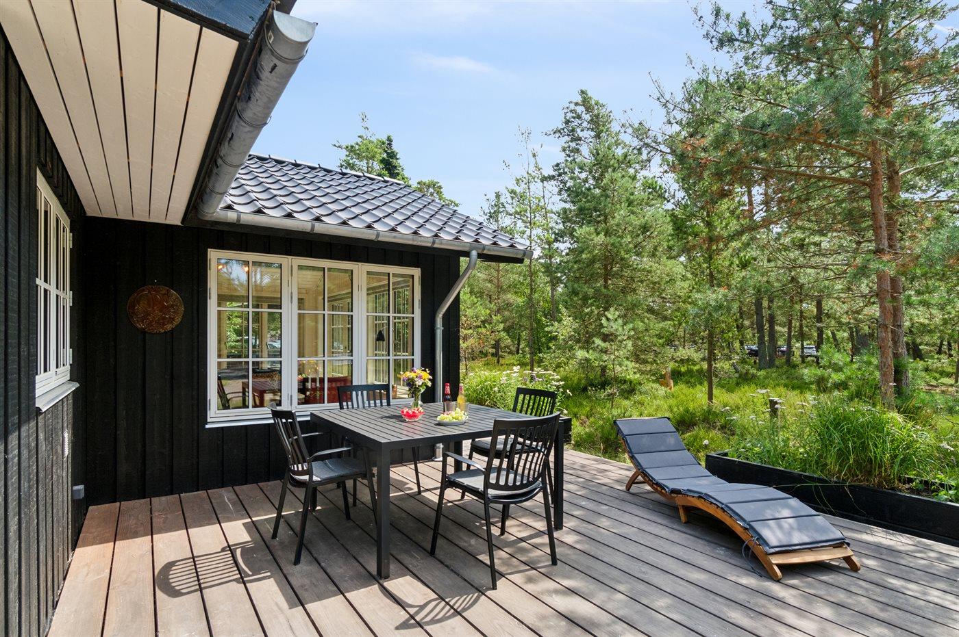 Godt design og god smag kendetegner dette velindrettede feriehus i udsøgt kvalitet med en nøje afstemt moderne skandinavisk møblering. Sommerhuset ligger på en stor åben fyrretræsbevokset naturgrund - tæt på restaurant, iskiosk og burgerbar. I højsæsonen er der også et udsalg med daglige fornødenheder ved Dueodde Vandrerhjem, der desuden tilbyder adgang til en lille, men populær svømmehal. I nærheden er der en 18 hullers golfbane.