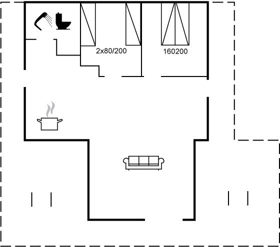 Der er i alt 2 soveværelser: 1 værelse med dobbeltseng og 1 værelse med 2 sovepladser i enkeltsenge.