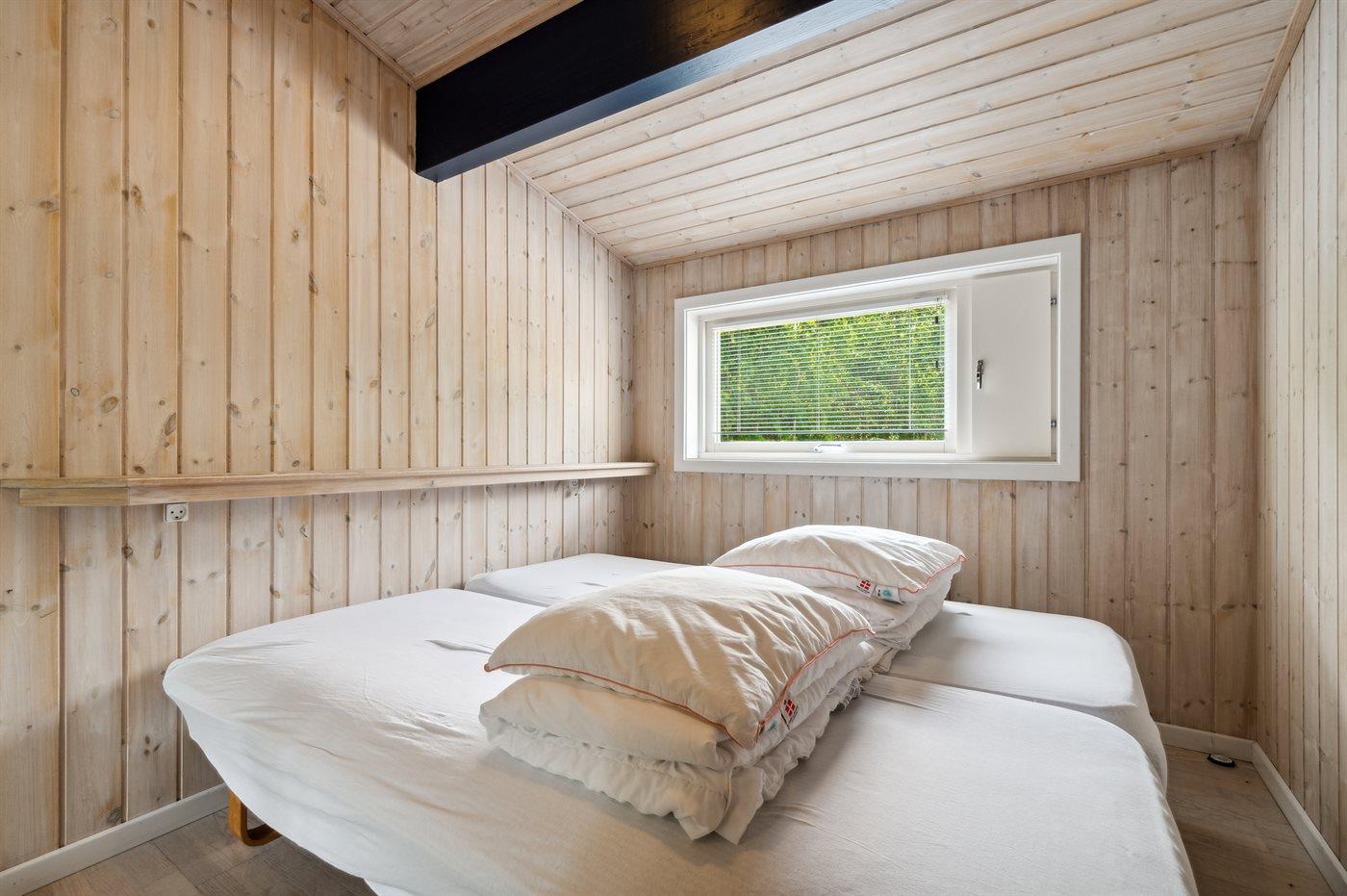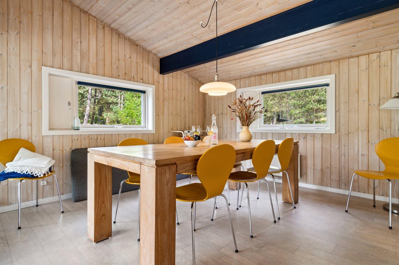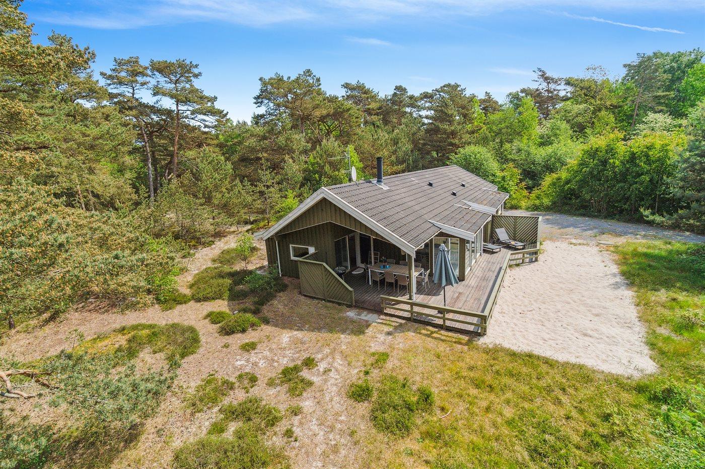 Moderne feriehus indrettet med både spa og sauna, så der er plads til wellness i ferien. Sommerhuset er beliggende på større naturgrund, hvor man aner klitternes form i den let kuperede grund, hvor der både er sand, lyng og let fyrretræsbevoksning.