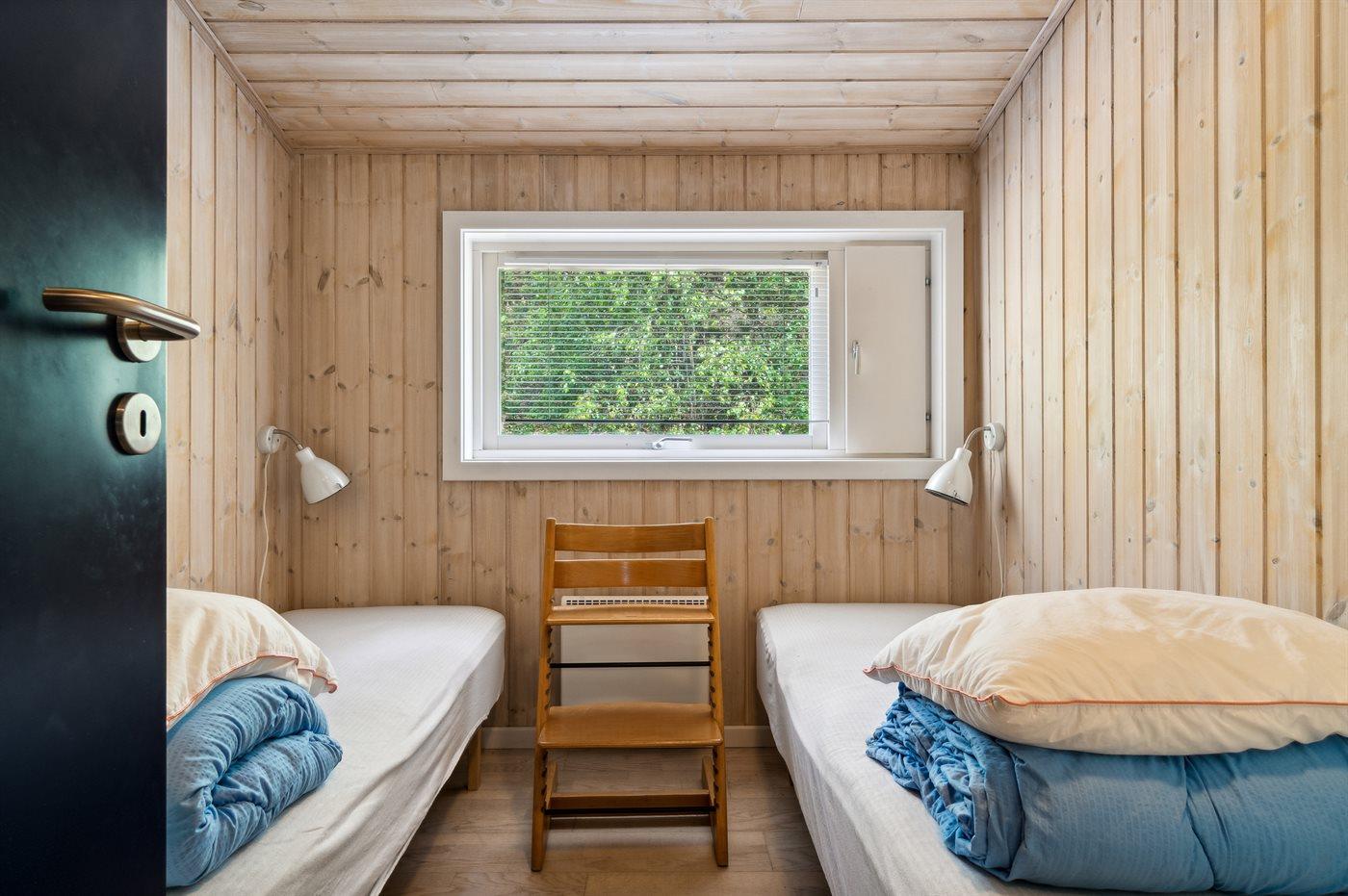 Der er i alt 4 soveværelser. Sovepladserne fordeler sig på: 6 sovepladser i dobbeltsenge. 2 sovepladser i enkeltsenge.