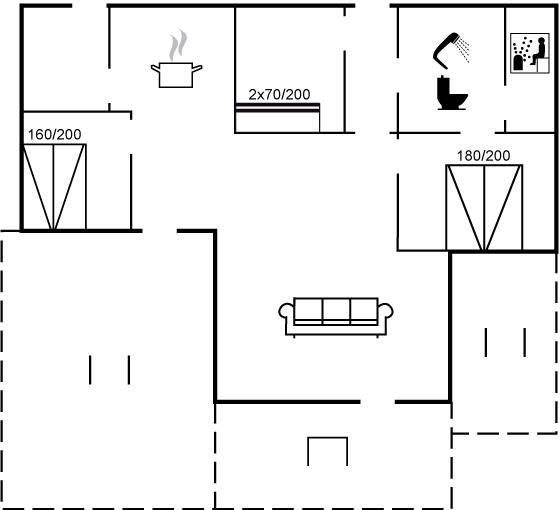 Der er i alt 3 soveværelser. Sovepladserne fordeler sig på: 4 sovepladser i dobbeltsenge. 2 sovepladser i køjeseng.
