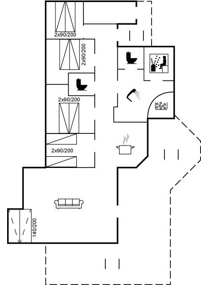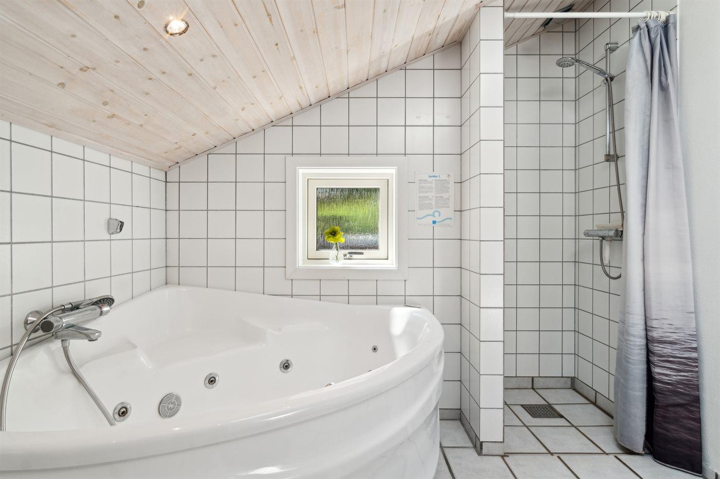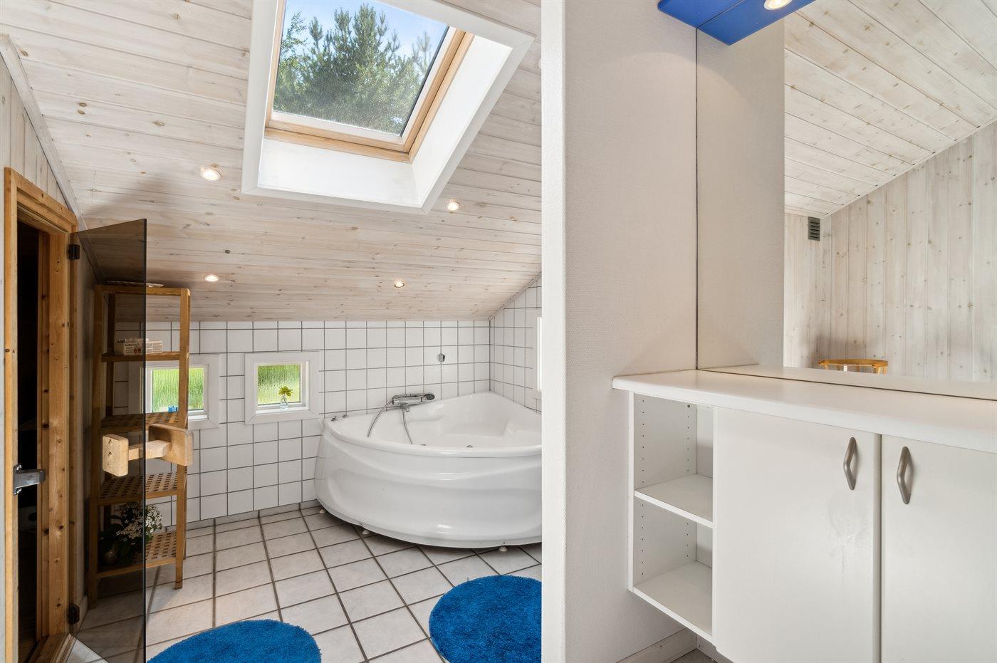 Der er 2 badeværelser med bruseniche og 2 toiletter, heraf 1 gæstetoilet. Der er gulvvarme på 2 badeværelser. Der er gulvvarme på gæstetoilettet. I saunaen er der mulighed for afslapning.