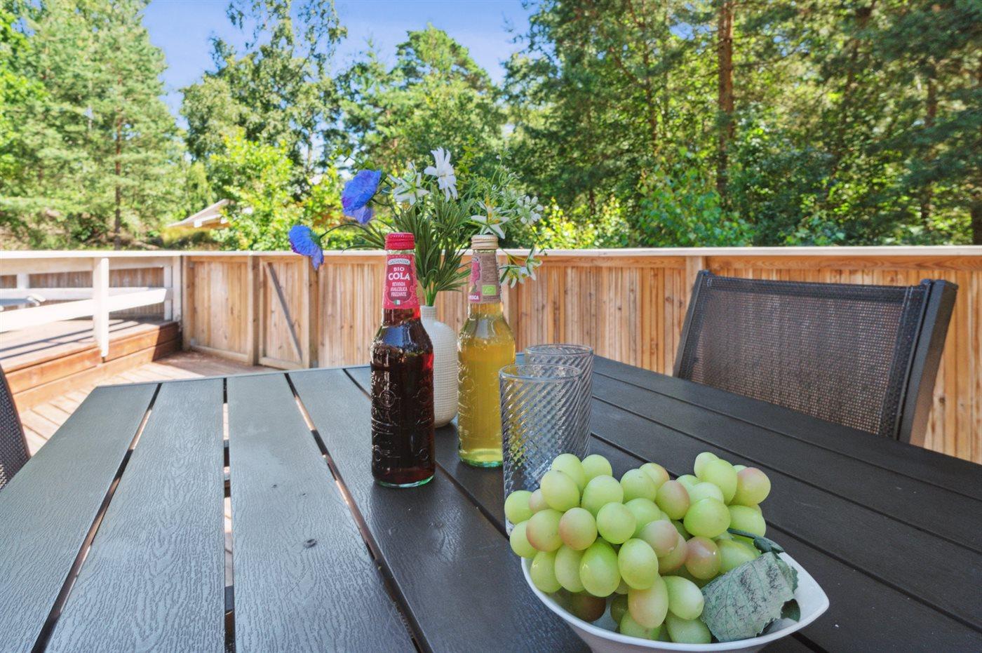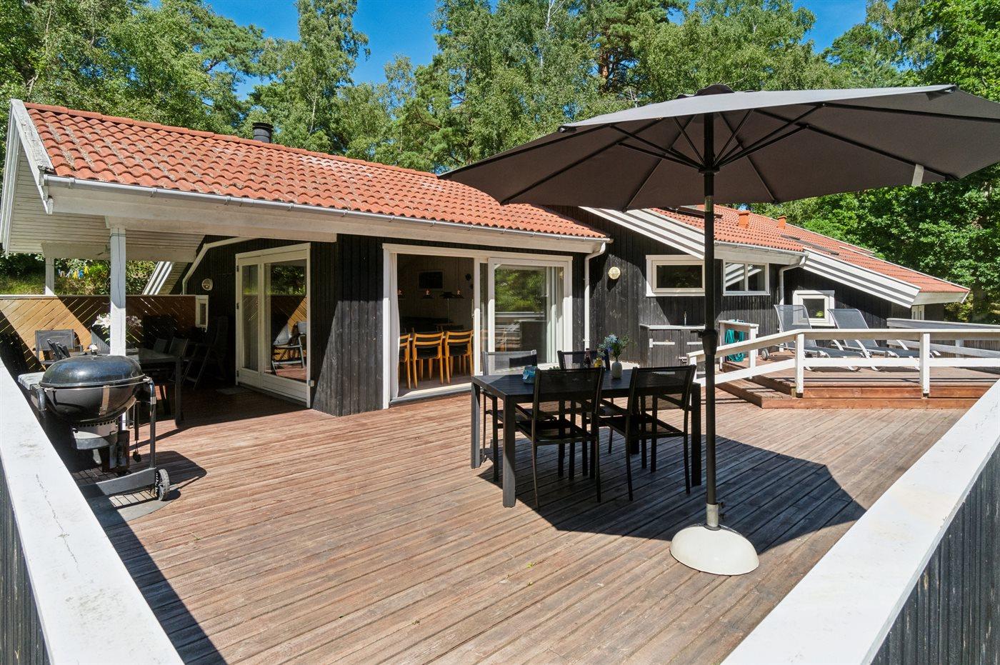 Sommerhuset har plads til to familier og er energivenligt. Husets varme vand – også til spa’en - opvarmes via solvarme, og der er luft til luft varmepumpe. Der er på terrassen endda blevet plads til et udekøkken.