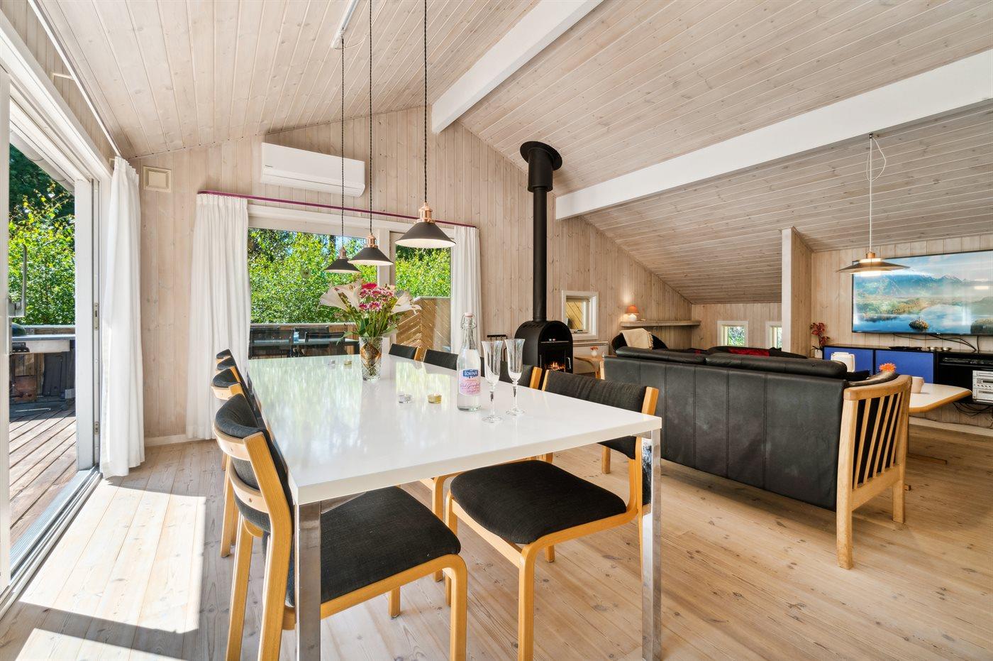 Sommerhuset egner sig til 10 personer. Ferieboligen er på 117 m² og er bygget i 1999. Det er ikke tilladt at medbringe husdyr. Ferieboligen er udstyret med 1 energibesparende luft til luft varmepumpe. Der er solvarme. Der er gulvvarme i alle klinkegulve. Ferieboligen har vaskemaskine. Tørretumbler. Frysekapacitet på 70 liter. Der er desuden brændeovn. Til de små er der 1 stk. barnestol.