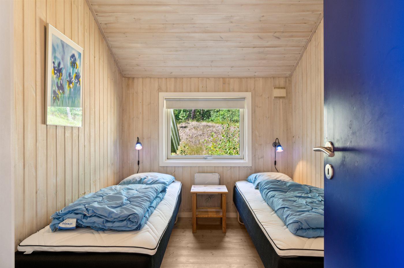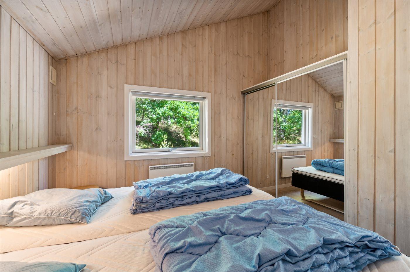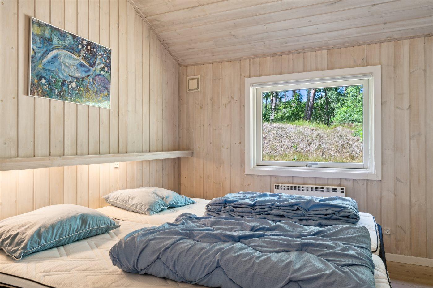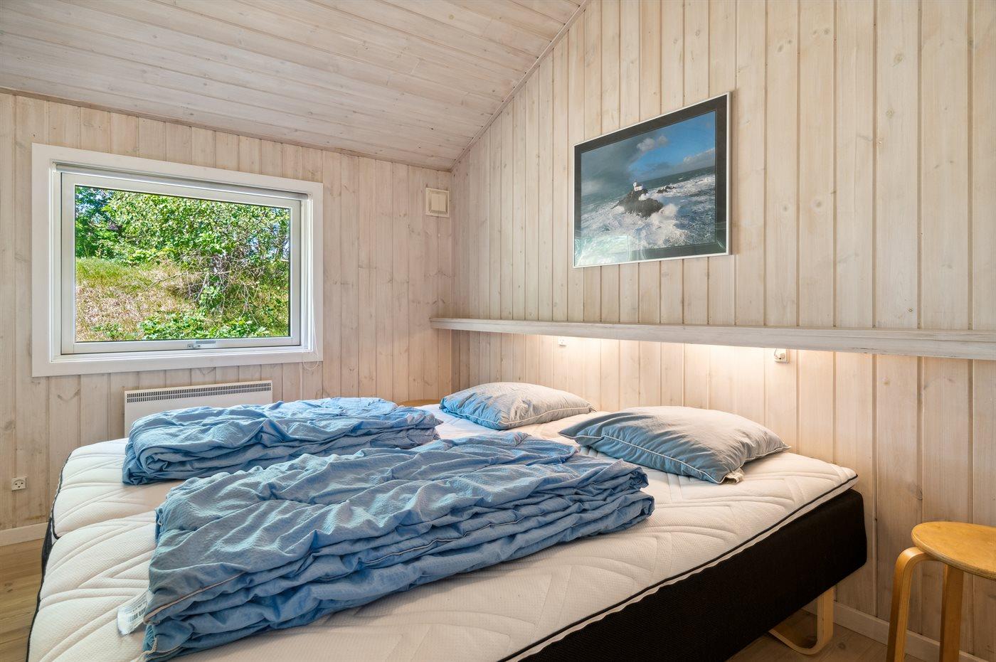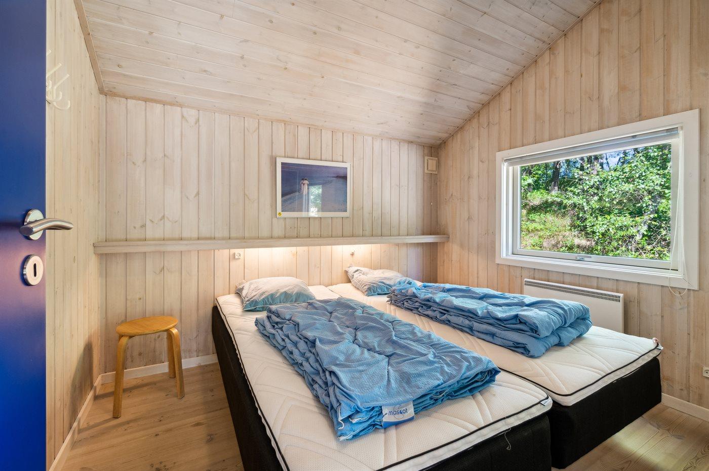 Der er i alt 4 soveværelser. Sovepladserne fordeler sig på: 8 sovepladser i dobbeltsenge. 2 sovepladser i enkeltsenge. 2 af disse sovepladser befinder sig i stuen.