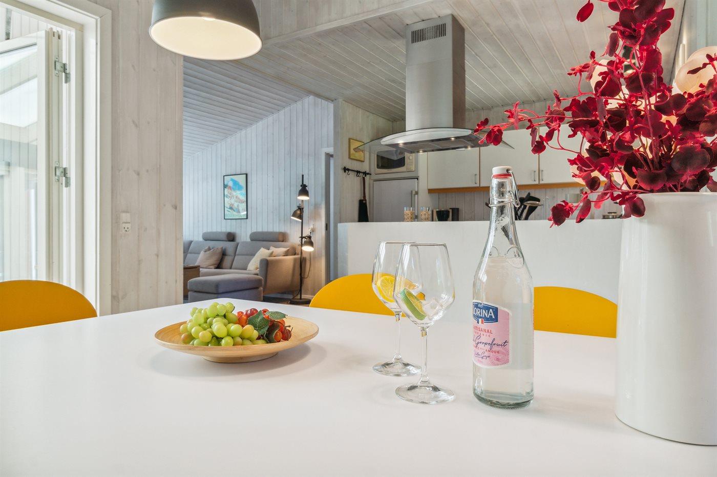 Køkkenet er udstyret med 1 køleskab. Der er 4 keramiske kogeplader, varmluftovn, mikrobølgeovn samt opvaskemaskine.
