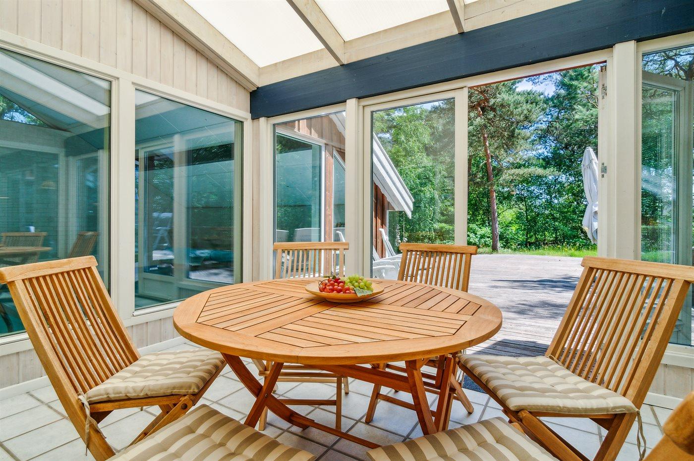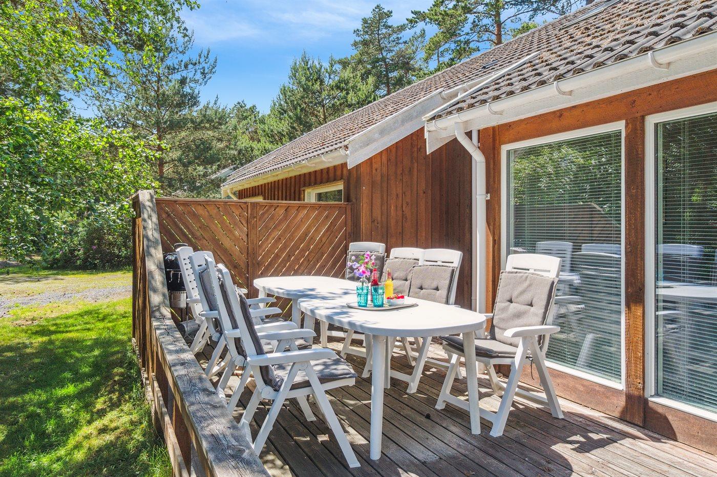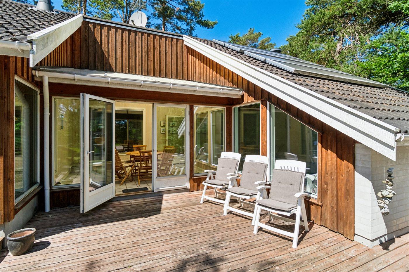 De store træterrasser giver gode muligheder for at følge naturens luner, og det er oplagt til grillaftenen eller blot at nyde solen, hvis man ikke lige vil gå de 200 meter ned til stranden. På Dueodde er der både restauranter, iskiosk og en større gangbro ud til stranden. Koldkrigsmuseum, 18 hullers golfbane og fiskerlejet Snogebæk er inden for overkommelig rækkevidde - en lille frisk cykeltur i det flade terræn foretrækkes af mange af husets gæster.