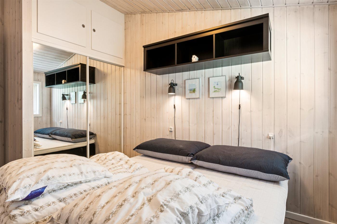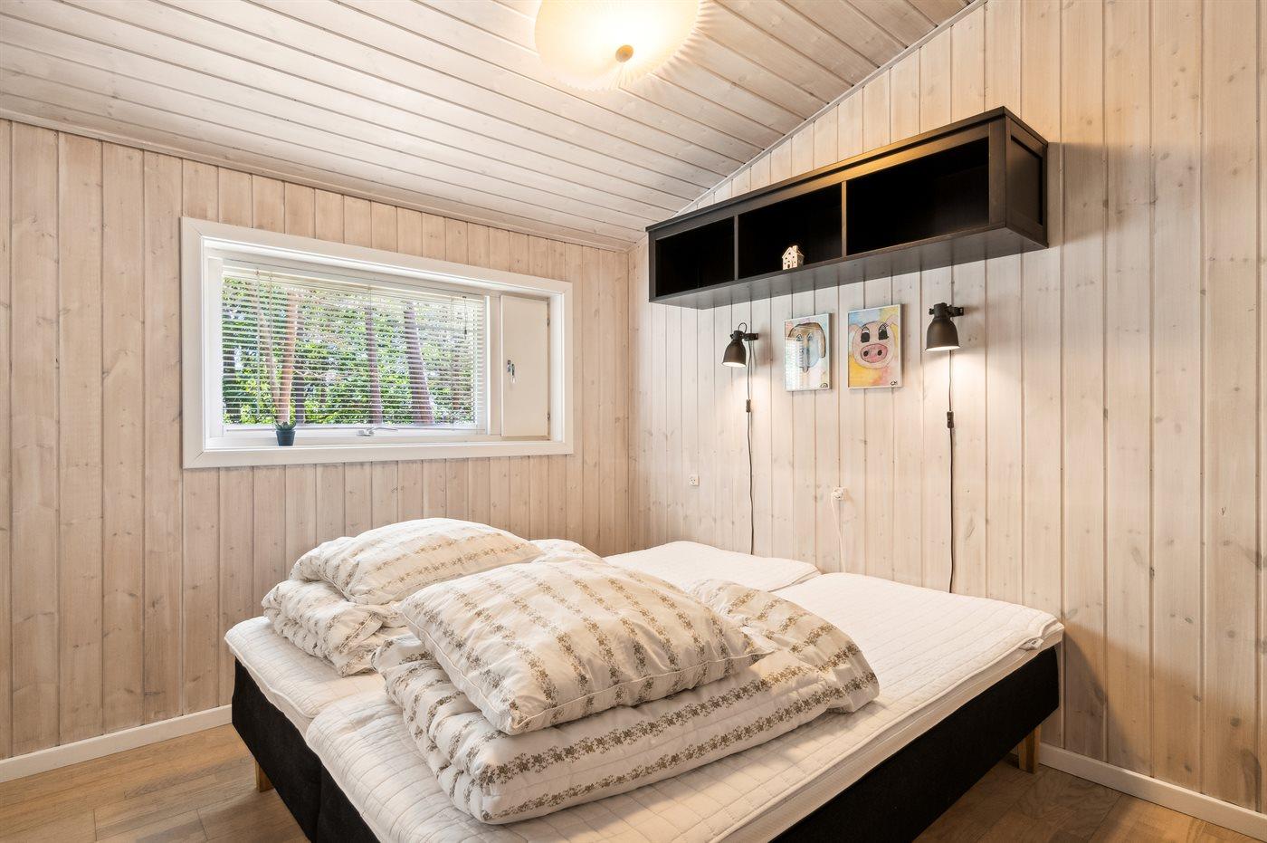 Der er i alt 5 soveværelser. Sovepladserne fordeler sig på: 8 sovepladser i dobbeltsenge. 2 sovepladser i enkeltsenge. Derudover er der 1 stk. barneseng.