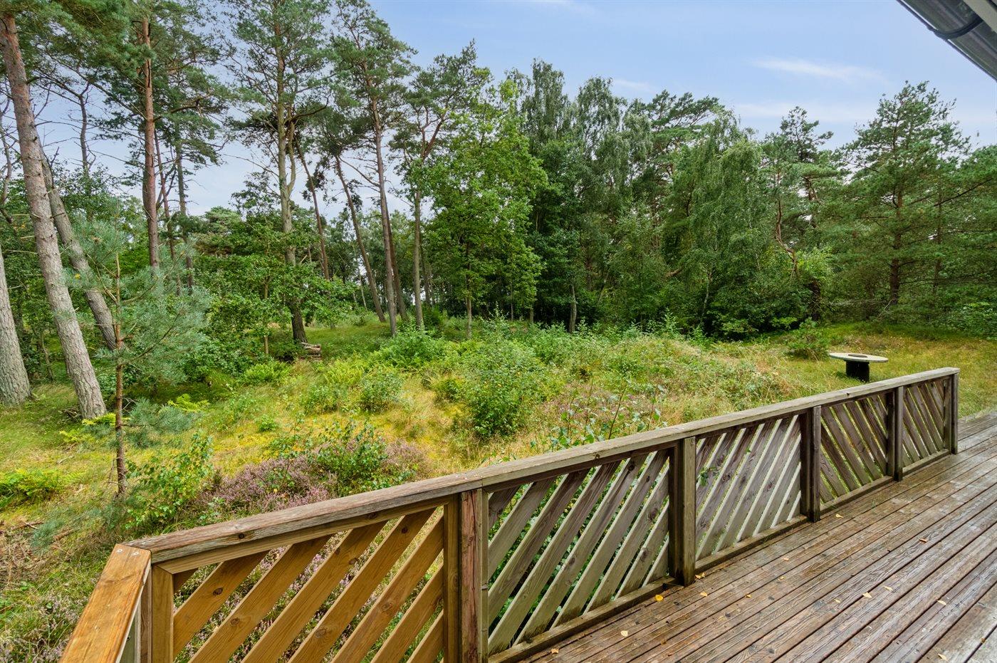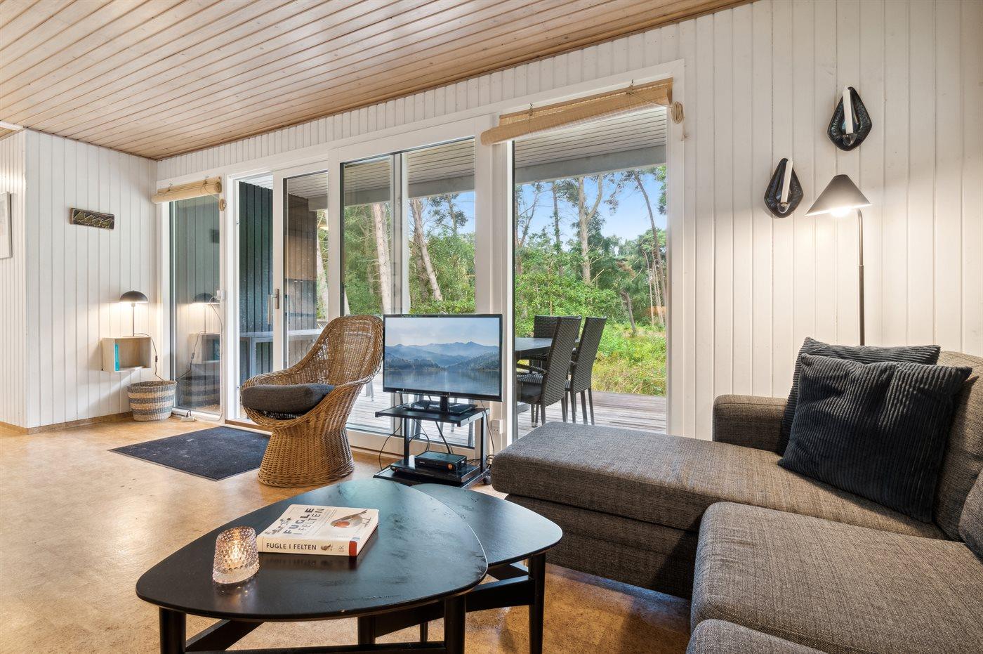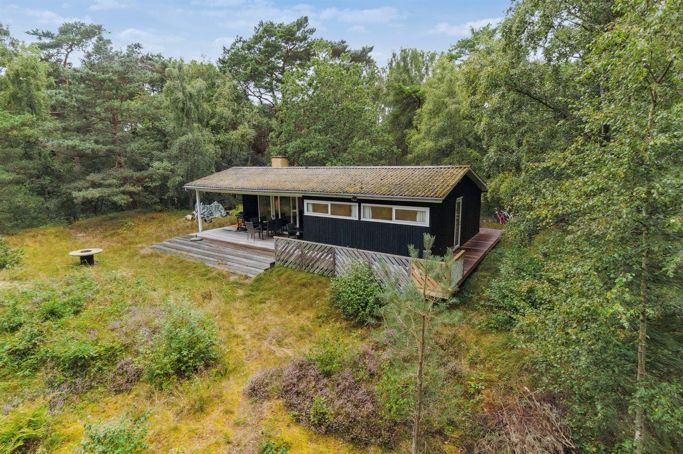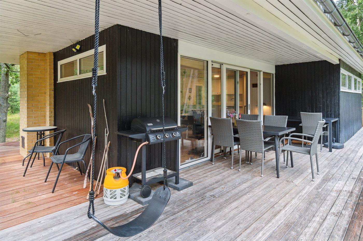 Sommerhuset er placeret på en stor naturgrund, præget af klitlandskabet og havet som blot er 120 meter væk. Lille sti fører direkte til Østersøen, som man også kan se fra huset. Husets naturlige samlingspunkt er den sydvendte terrasse, som er delvist overdækket, og som er udstyret med havemøbler og grill. Der er terrasse hele vejen rundt om huset. Fra den syd- og vestvendte terrasse kan man nyde udsigten over den store naturgrund og havet.