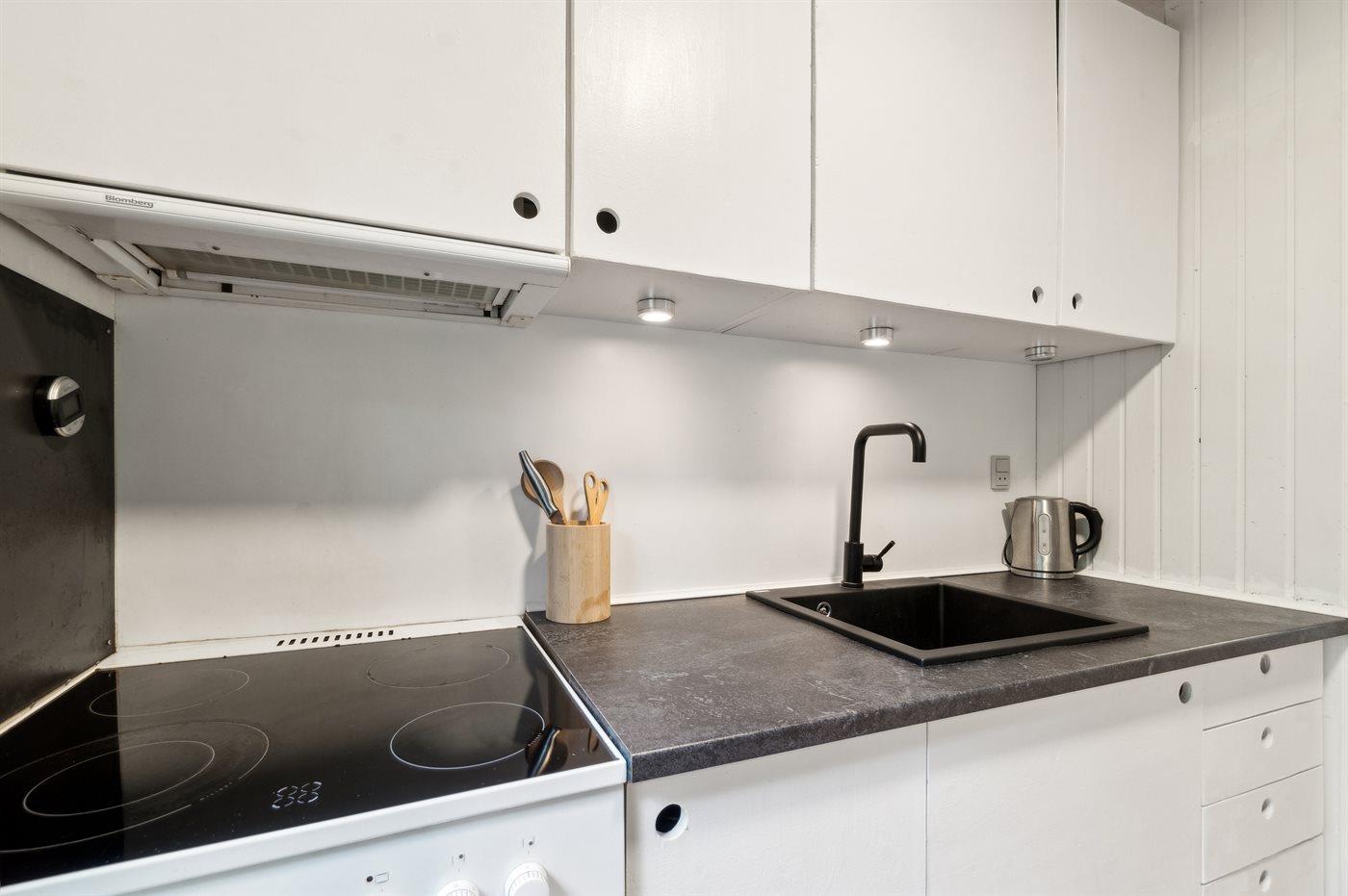 Køkkenet er udstyret med 1 køleskab. Der er 4 keramiske kogeplader, varmluftovn, mikrobølgeovn.