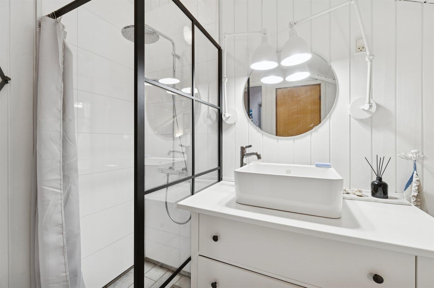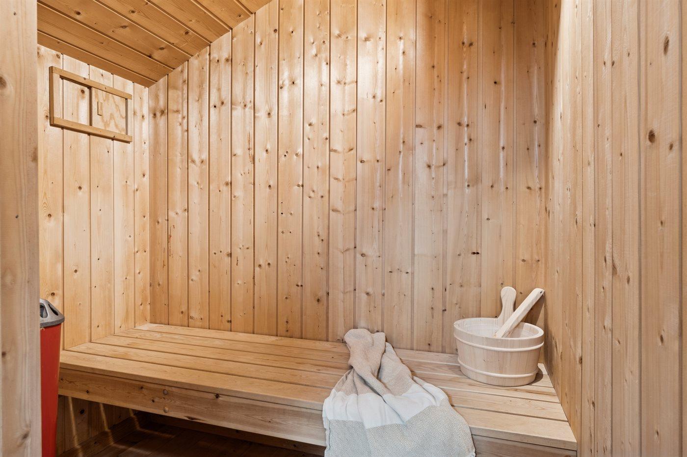 Der er 1 badeværelse med bruseniche og 2 toiletter, heraf 1 gæstetoilet. Der er gulvvarme på 1 badeværelse. I saunaen er der mulighed for afslapning.