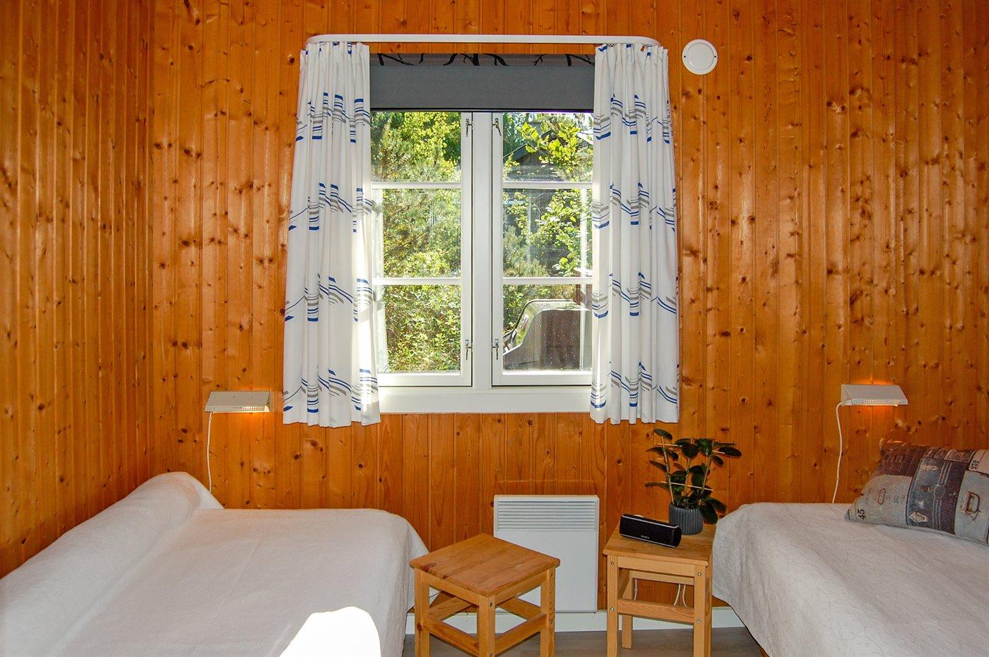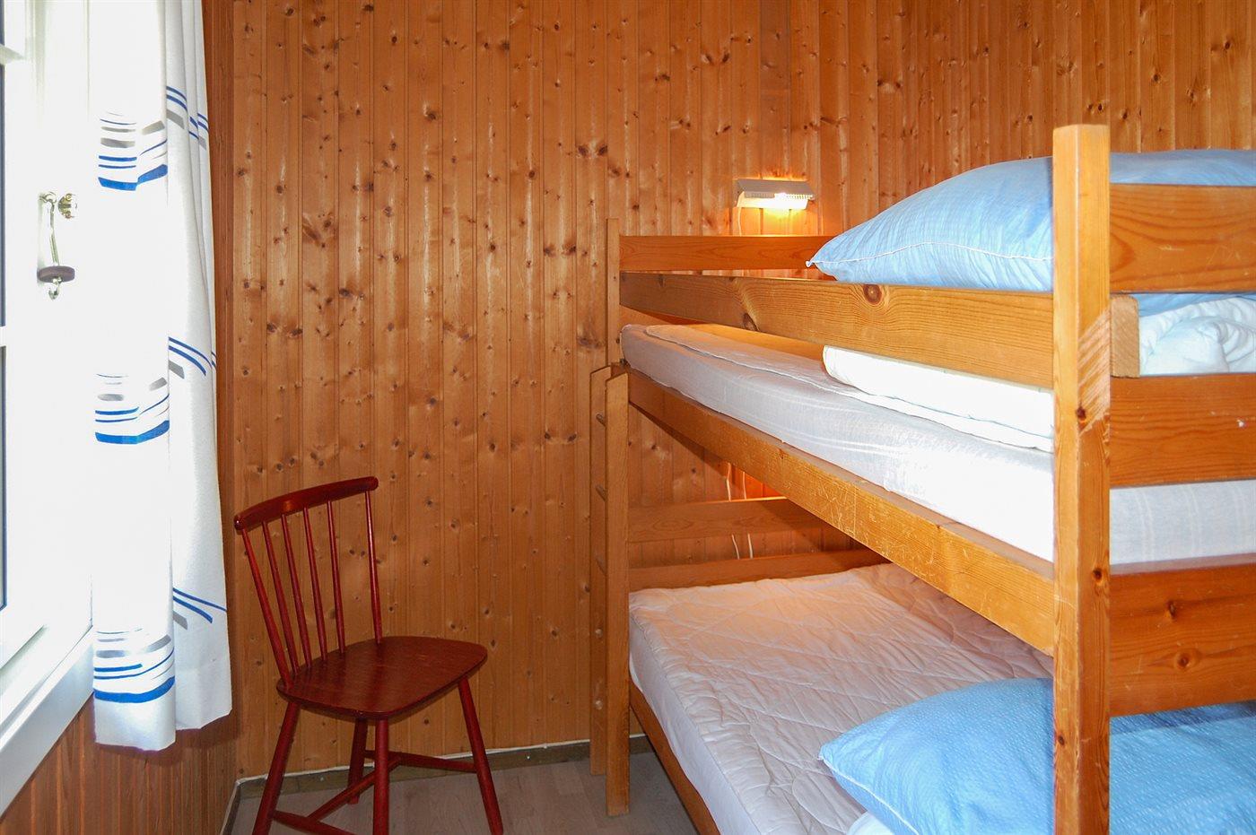 Der er i alt 3 soveværelser. Sovepladserne fordeler sig på: 2 sovepladser i dobbeltseng. 2 sovepladser i enkeltsenge. 2 sovepladser i køjeseng. Derudover er der 1 stk. barneseng.