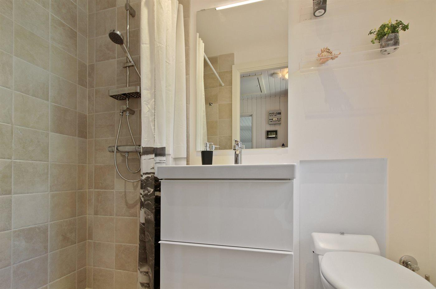 Der er 1 badeværelse med bruseniche og 1 toilet.