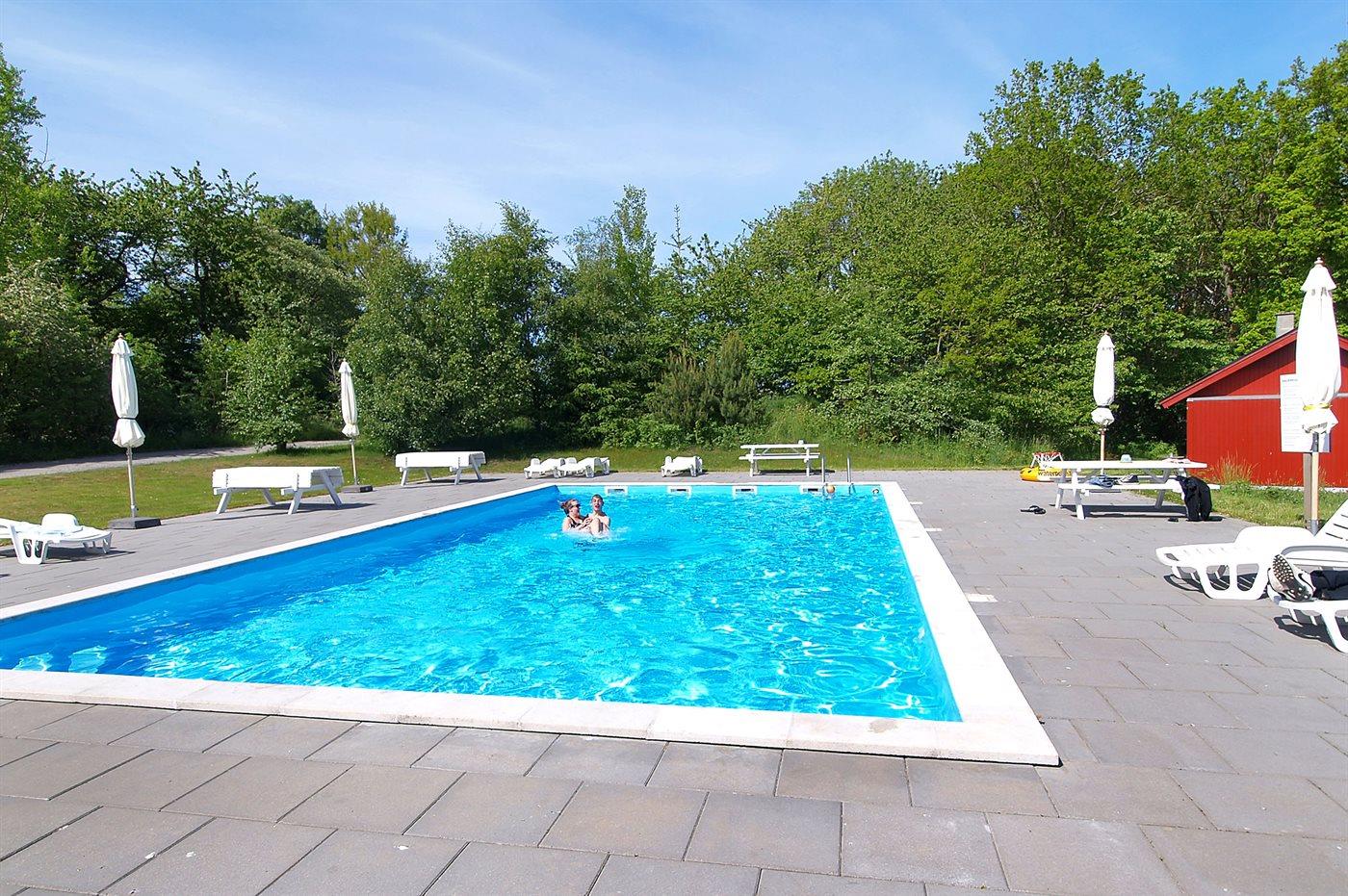 Direkte ned til en pragtfuld, bred sandstrand med perfekte bade- og vandsportsmuligheder ligger dette velholdte sommerhus. Huset er en del af "Dueodde Ferieby", hvor der findes fælles, udendørs swimmingpool samt børnepool til fri afbenyttelse (opvarmet fra 15.06. til 15.09.). Desuden er der mulighed for at spille bordtennis. I hovedbygningen er der fri adgang til trådløs internetforbindelse (computer skal medbringes). Vaskemaskine og tørretumbler kan benyttes mod betaling.
