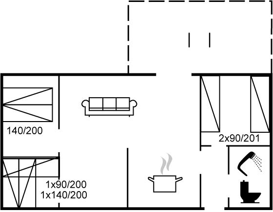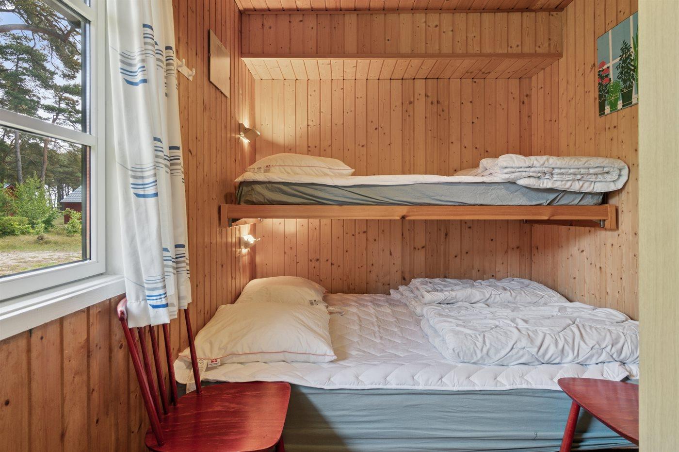 Der er i alt 3 soveværelser. Sovepladserne fordeler sig på: 4 sovepladser i dobbeltsenge. 2 sovepladser i enkeltsenge.1 soveplads i køjeseng.