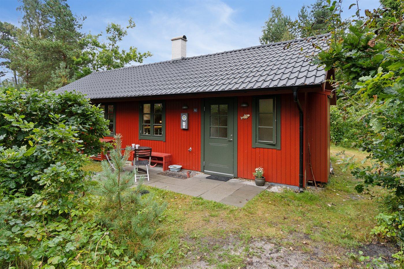 naturgrund. Der er 200 m til havet. Nærmeste forretning er beliggende i en afstand af 1500 m. Til ferieboligen hører 16 m² terrasseareal. Parkering ved ferieboligen.