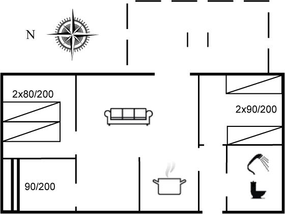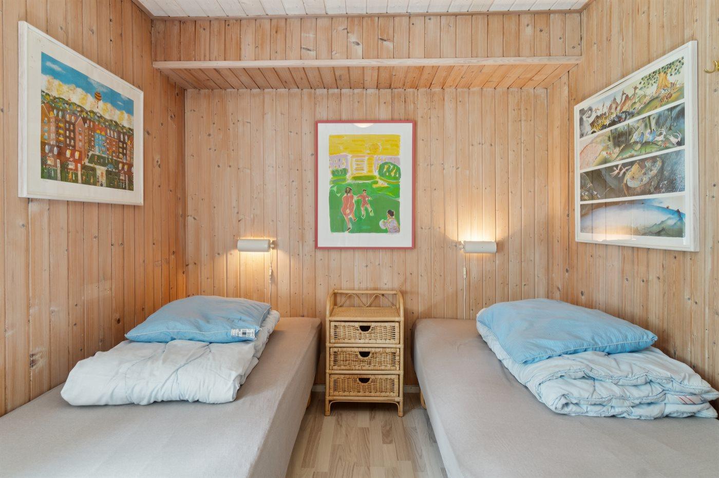 Der er i alt 3 soveværelser. Sovepladserne fordeler sig på: 2 sovepladser i dobbeltseng. 2 sovepladser i enkeltsenge. 2 sovepladser i køjeseng. Derudover er der 1 stk. barneseng.