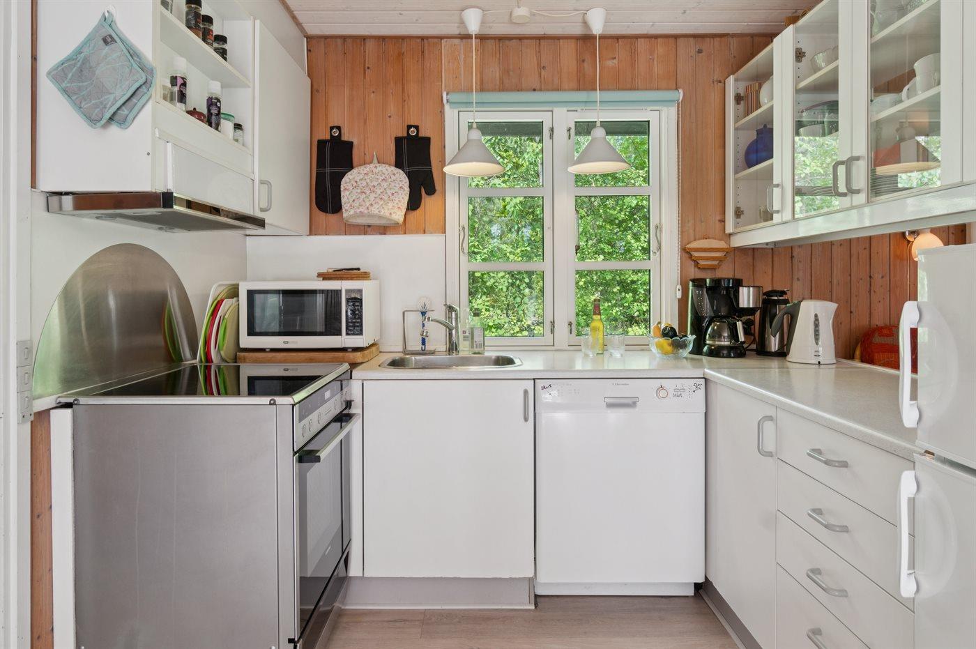 Køkkenet er udstyret med 1 køleskab. Der er 4 keramiske kogeplader, varmluftovn, mikrobølgeovn samt opvaskemaskine.