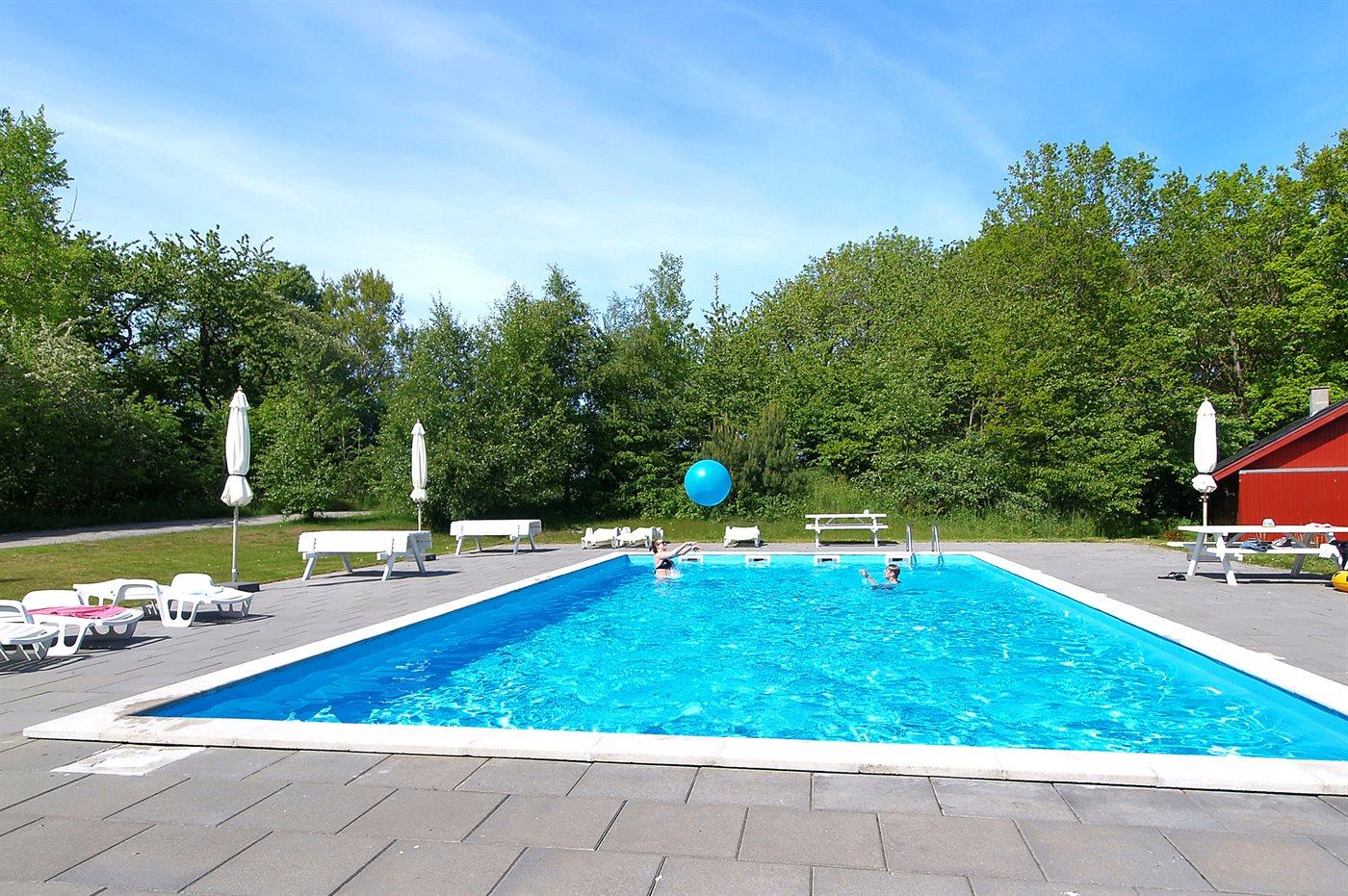 Hyggeligt sommerhus i Dueodde Ferieby med pool, tæt på strand og legefaciliteter for hele familien.