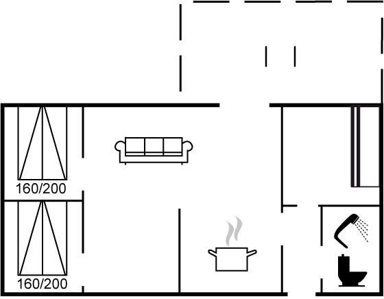 Der er i alt 3 soveværelser. Sovepladserne fordeler sig på: 4 sovepladser i dobbeltsenge. 2 sovepladser i køjeseng.