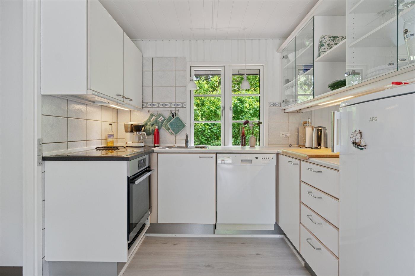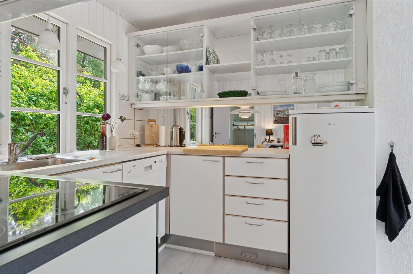 Køkkenet er udstyret med 1 køleskab. Der er 4 keramiske kogeplader, varmluftovn, mikrobølgeovn samt opvaskemaskine.