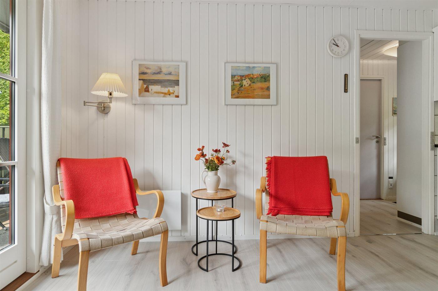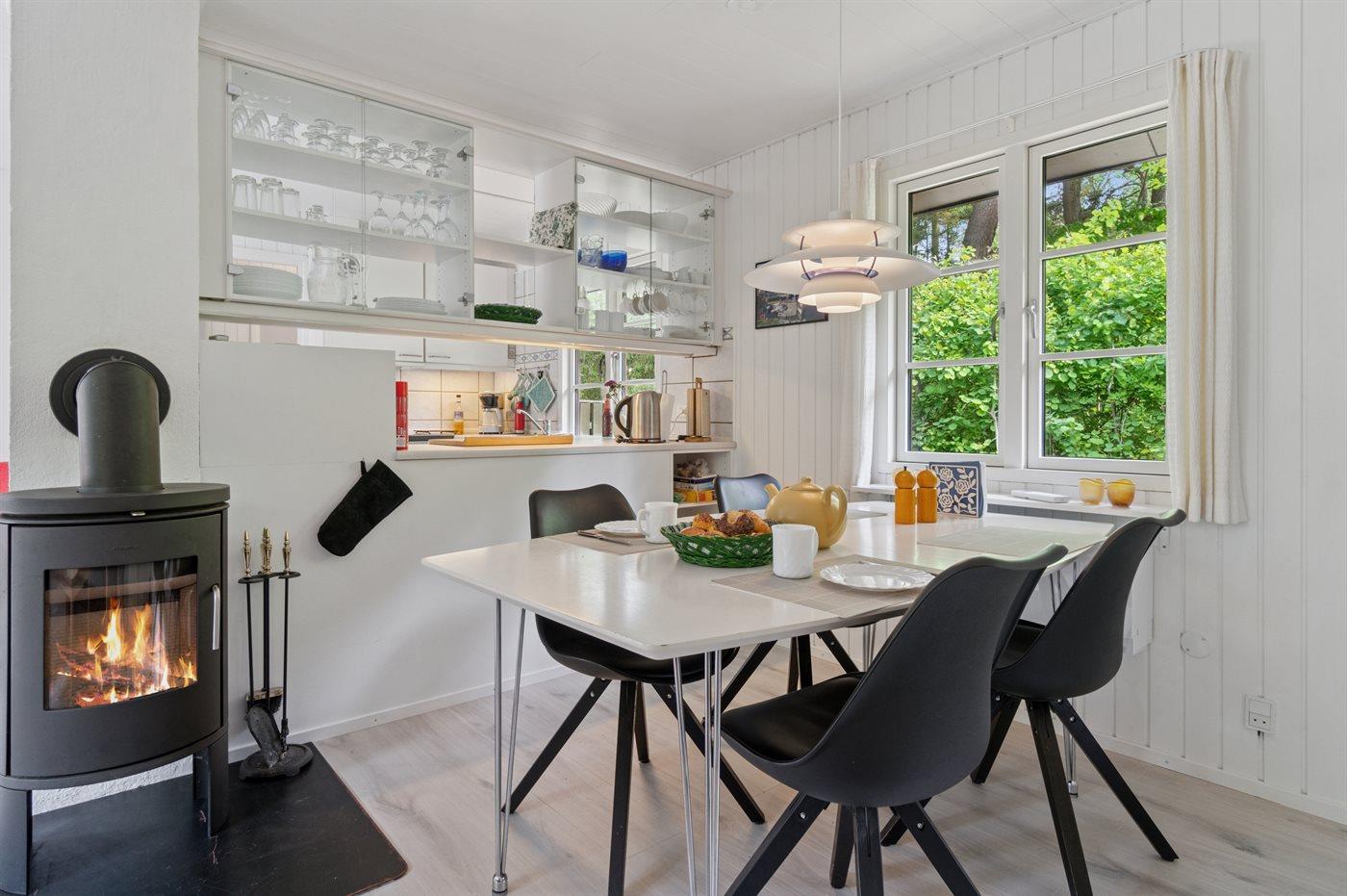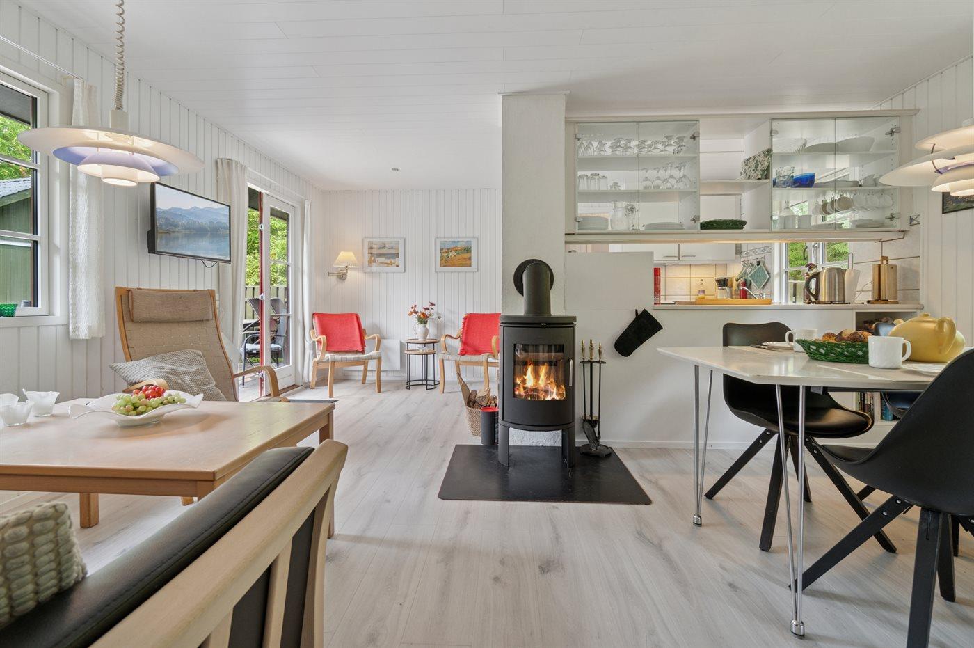 Dette hus er pænt og nydeligt istandsat, så alt fremtræder pænt og indbydende. I forbindelse med den nylige renovering er der kommet nye vinduer og døre som sammen med den nyinstallerede varmepumpe sørger for et godt indeklima. Her kan man på kølige aftener udenfor sæsonen hygge sig med kortspil, en god film i Tv’et eller bare nyde samværet og de varme omgivelser - måske endda i brændeovnens gyldne skær.
