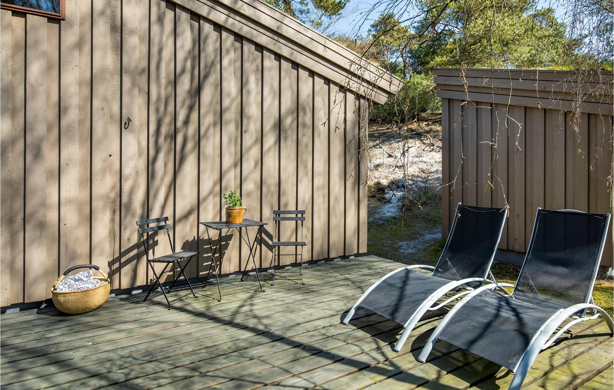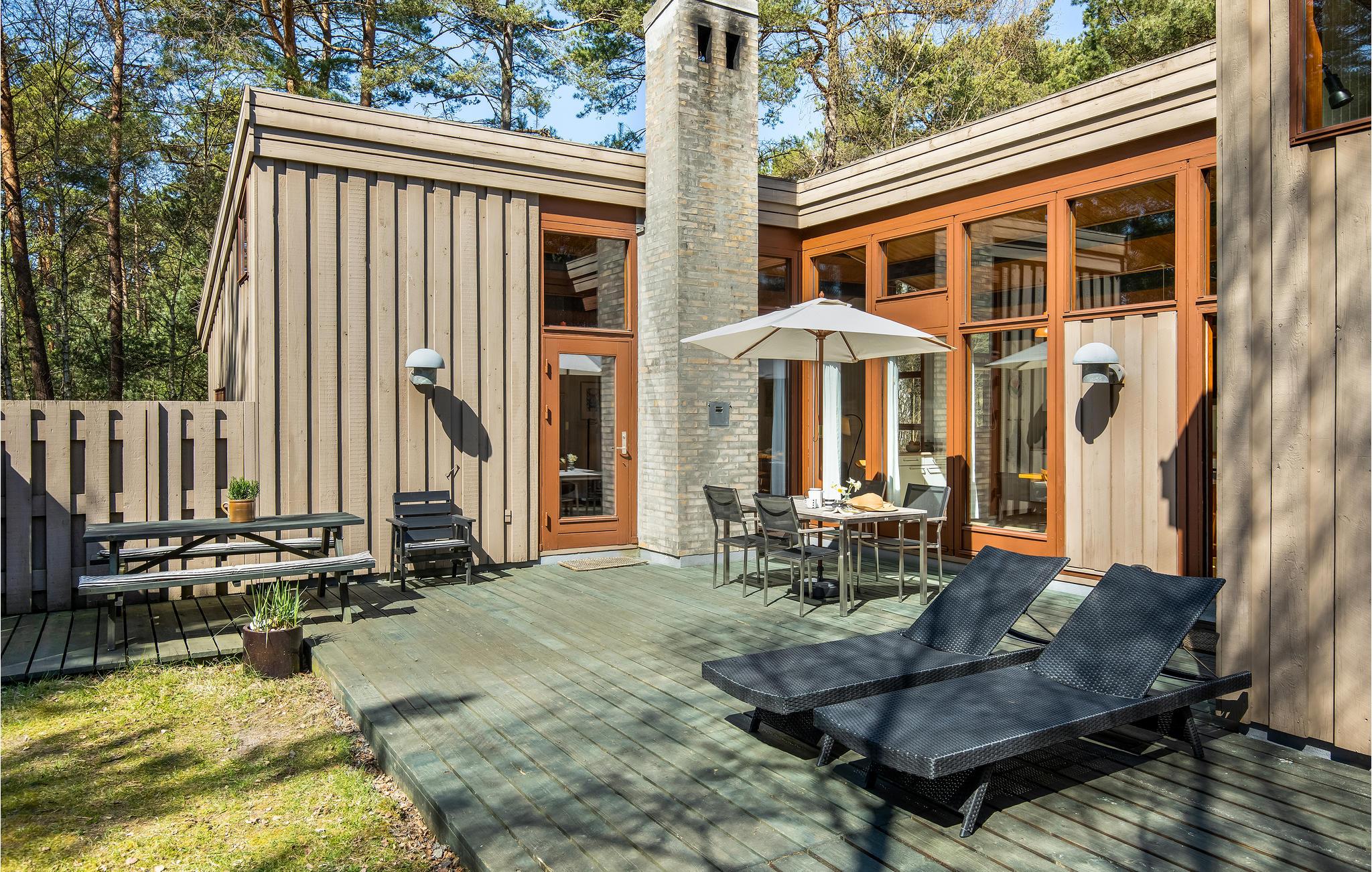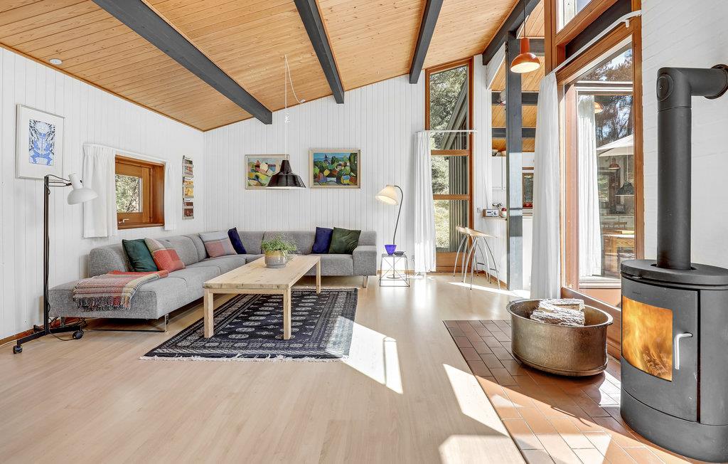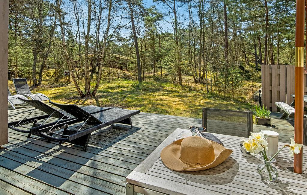 Moderne feriehus nær Dueoddes smukke strand med skov og kyst, perfekte terrasser og charmerende detaljer.