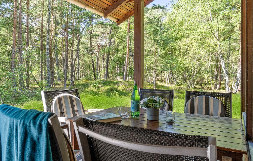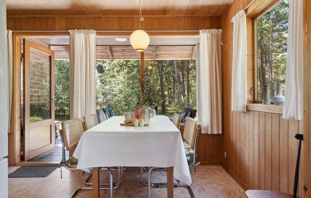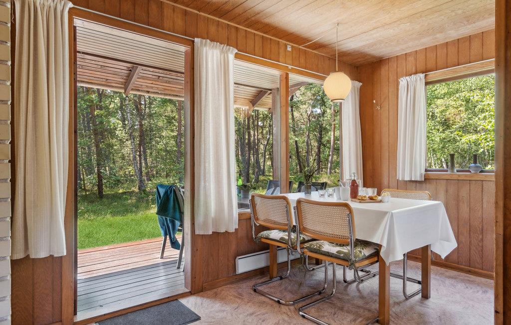 Velkommen til det sydlige Bornholm og dette charmerende sommerhus, hvor I kan nyde jeres feriedage. Dæk op til dagens måltider med udsigt til den grønne grund og tænd op i brændeovnen på en kølig aften. Glæd jer til små rolige stunder på terrassen, hvor I kan læne jer tilbage med en god bog og lytte til naturens lyde. Senere kan I sætte jer til rette med te og varme tæpper under overdækningen og kigge ud mod de høje træer, mens mørket falder på.