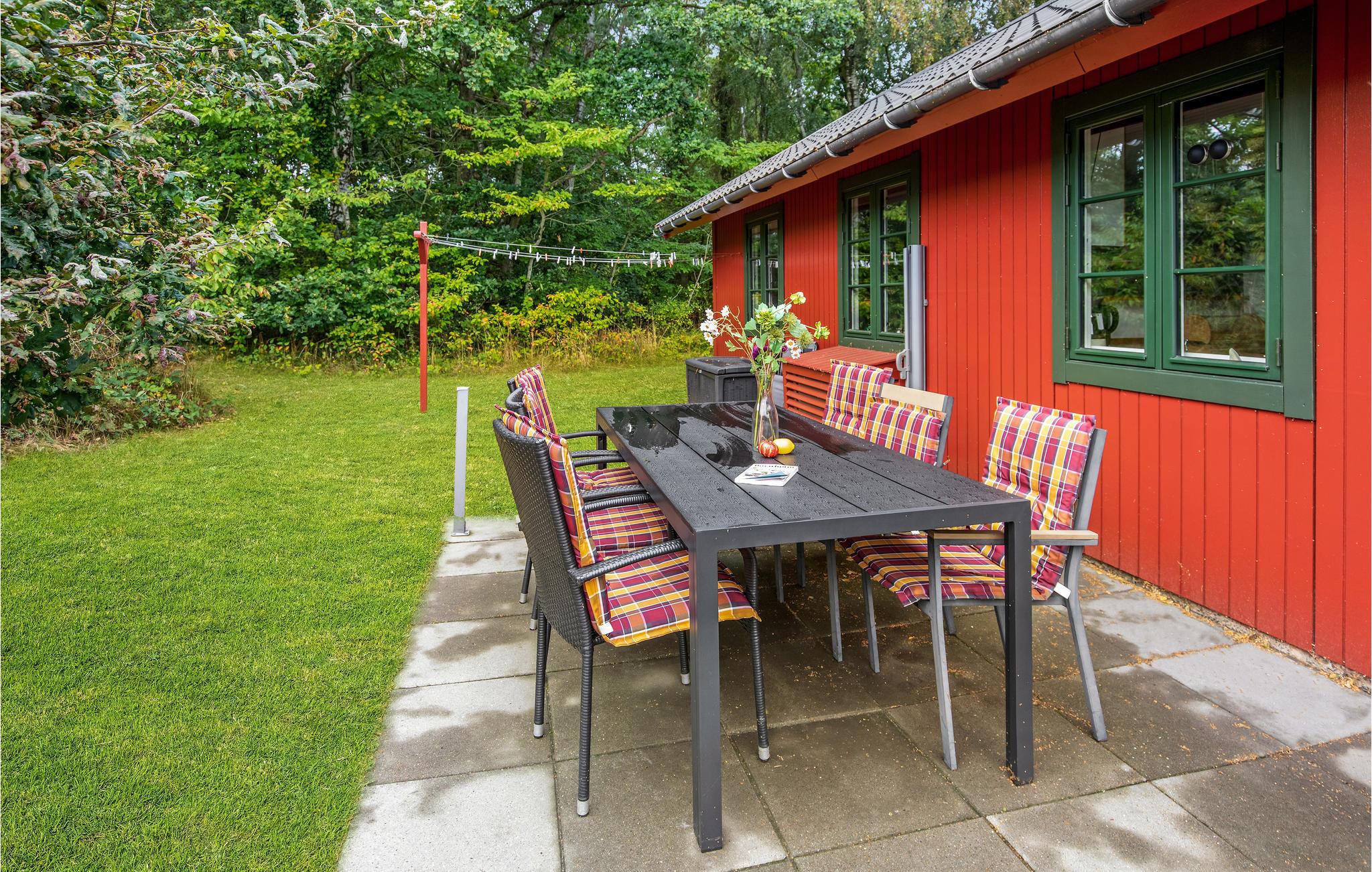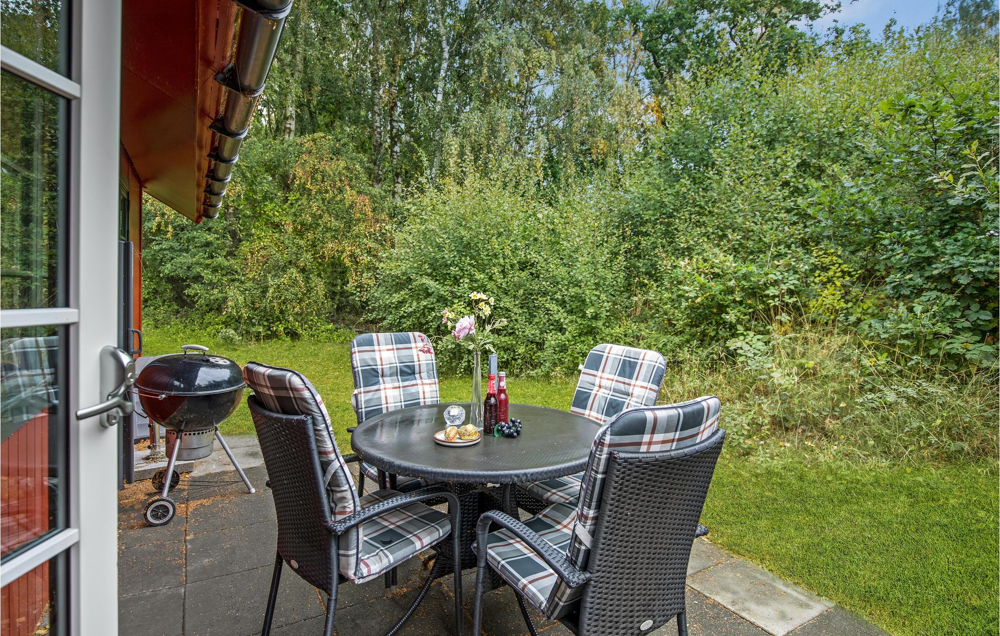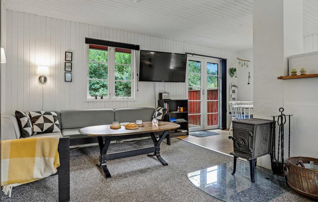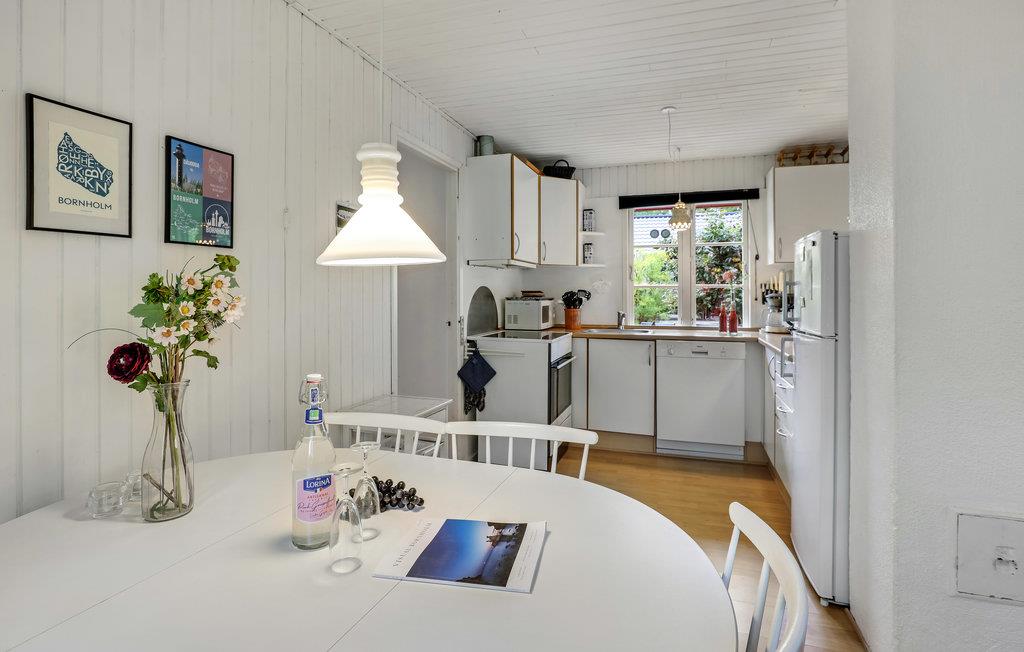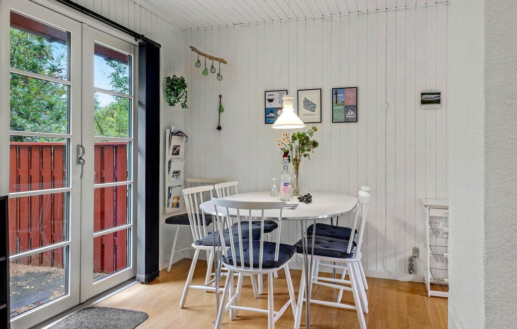 Charmerende sommerhus nær Dueoddes sandstrand med brændeovn og solrig terrasse, perfekt til familieferie på Bornholm.