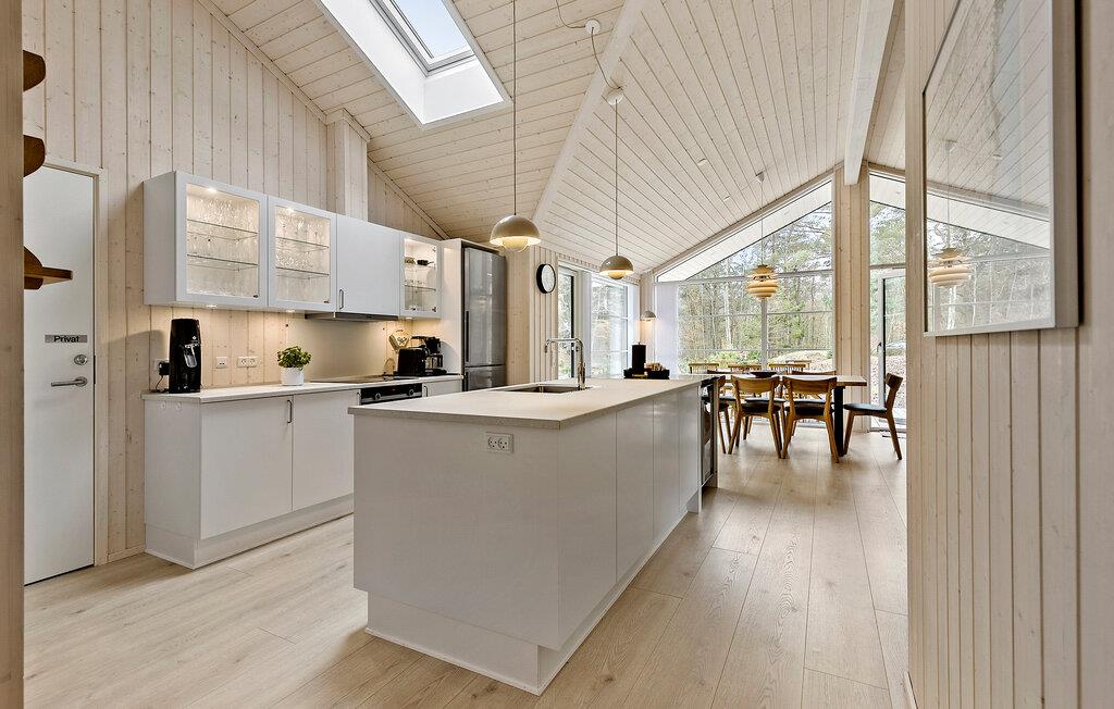 Velkommen til dette rummelige og komfortable hus, der ligger tæt på Bornholms sydlige spids, og hvor der er lagt op til nogle vidunderlige uger med den store familie. Huset er virkelig flot indrettet med et åbent boligkoncept, højt til loftet og store vinduespartier, der giver et lækkert lysindfald til stuen og en dejlig udsigt til omgivelserne. Køkkenet er stort og veludstyret, så gør madlavningen til et sjovt fællesprojekt, inden I runder aftenen af med brætspil eller en god film til lyden af knitrende ild fra brændeovnen. Eller måske I skal forkæle jer selv med lidt lækker wellness i saunaen eller spabadet?