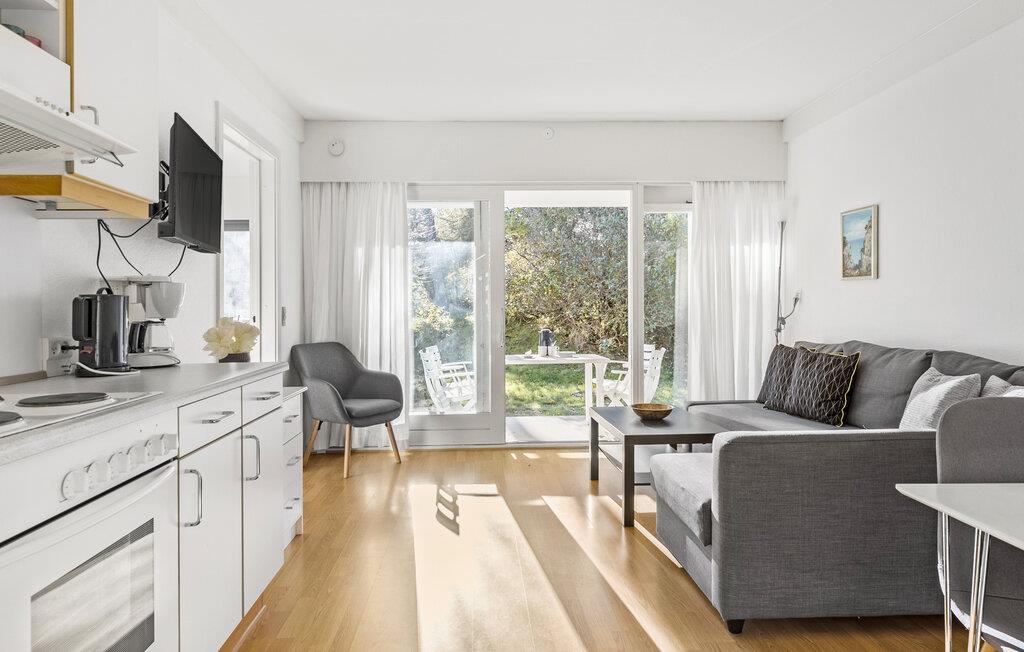 Denne hyggelige lejlighed tilbyder alt, hvad I har brug for til en afslappende ferie. Start dagen med morgenmad på jeres private terrasse og nyd den grønne natur og den friske luft. Lad jer indstille på en dag fuld af oplevelser med den afslappede atmosfære. I den lyse, moderne indrettede stue kan I finde ro. Læn jer tilbage i den komfortable sofa eller gør jer det hyggeligt i lænestolen for at afslutte aftenen afslappet. Køkkenet er godt udstyret, så I kan tilberede jeres måltider efter eget ønske og nyde dem enten i spiseområdet eller på terrassen.