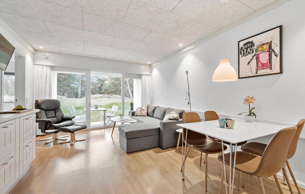 Denne lyse og hyggelige bolig giver jer det ideelle sted til en rolig pause fra hverdagen. Begynd dagen med morgenmad på terrassen, omgivet af frisk luft og smuk natur. Efter en aktiv dag kan I slappe af i den åbne opholdsstue. Gør det behageligt for jer i sofaen eller lænestolene og genoplev dagens oplevelser i fred og ro. I det veludstyrede køkken kan I tilberede jeres livretter, som I kan nyde enten ved spisebordet eller ude på terrassen.
