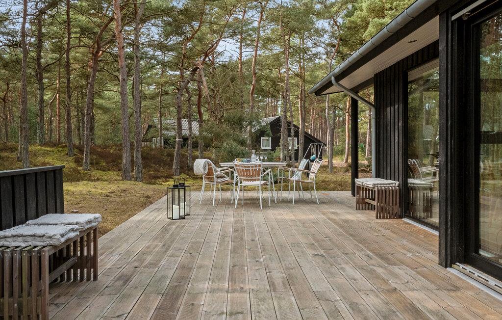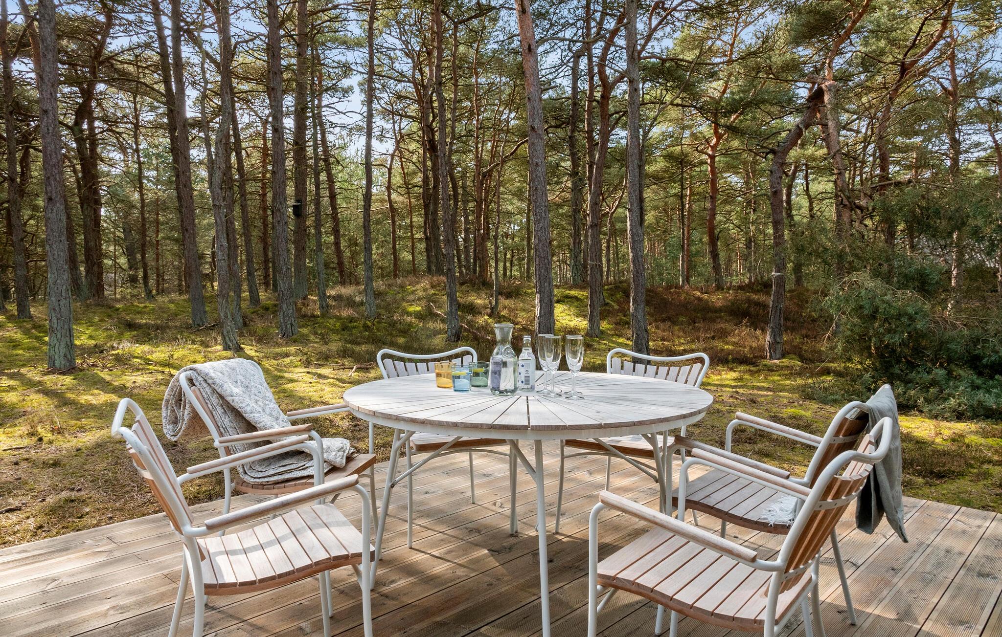 Tilbring dagen udenfor på den store træterrasse langs huset. Slap af på en bænk med en god bog, eller server jeres måltider under åben himmel. Brug grillen til en fælles middag, og lyt til trækronernes sagte susen. Takket være den rolige placering i naturen kan I nyde jeres ferie helt uforstyrret.