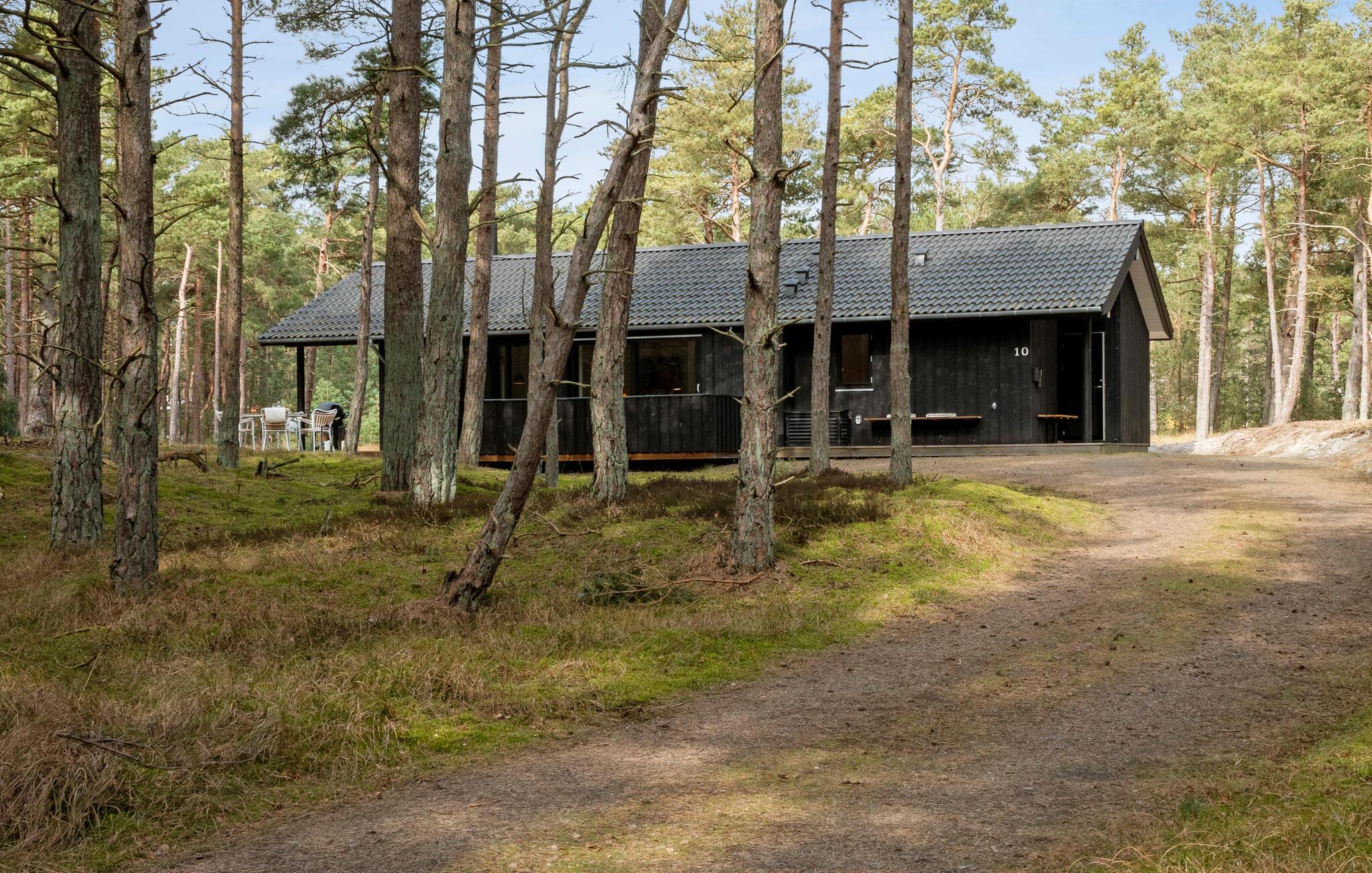 Nyt og stilfuldt feriehus i fredelig skov ved Dueoddes strand på Bornholm.
