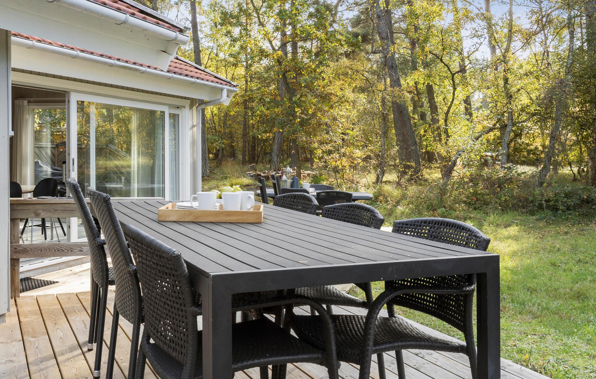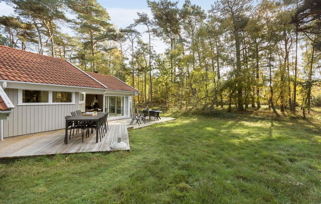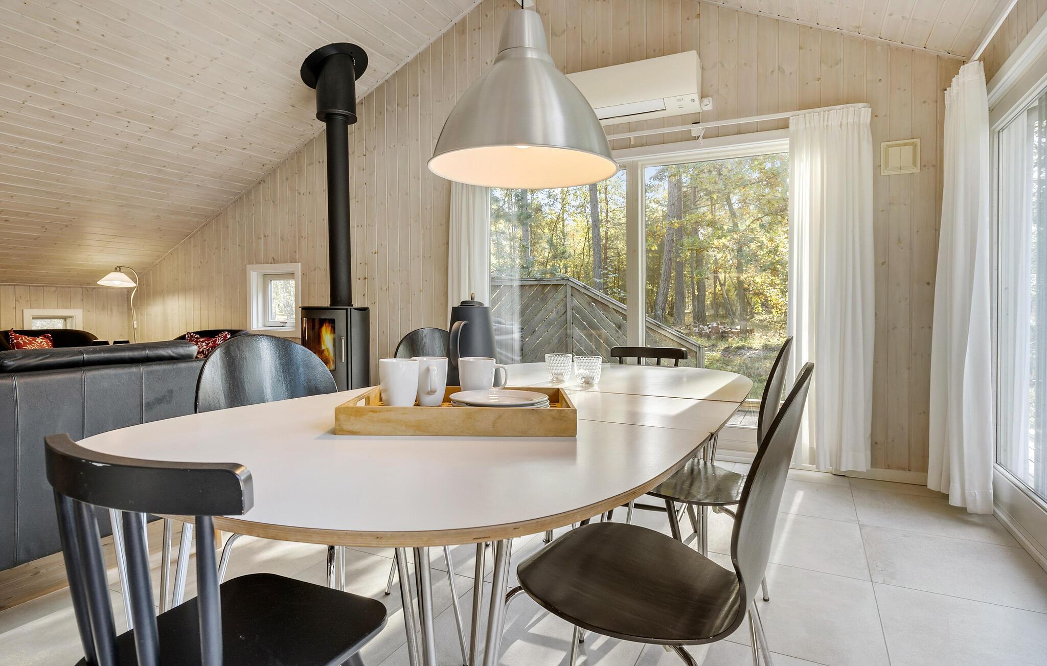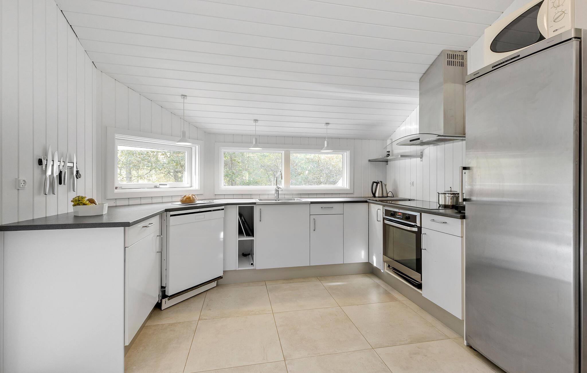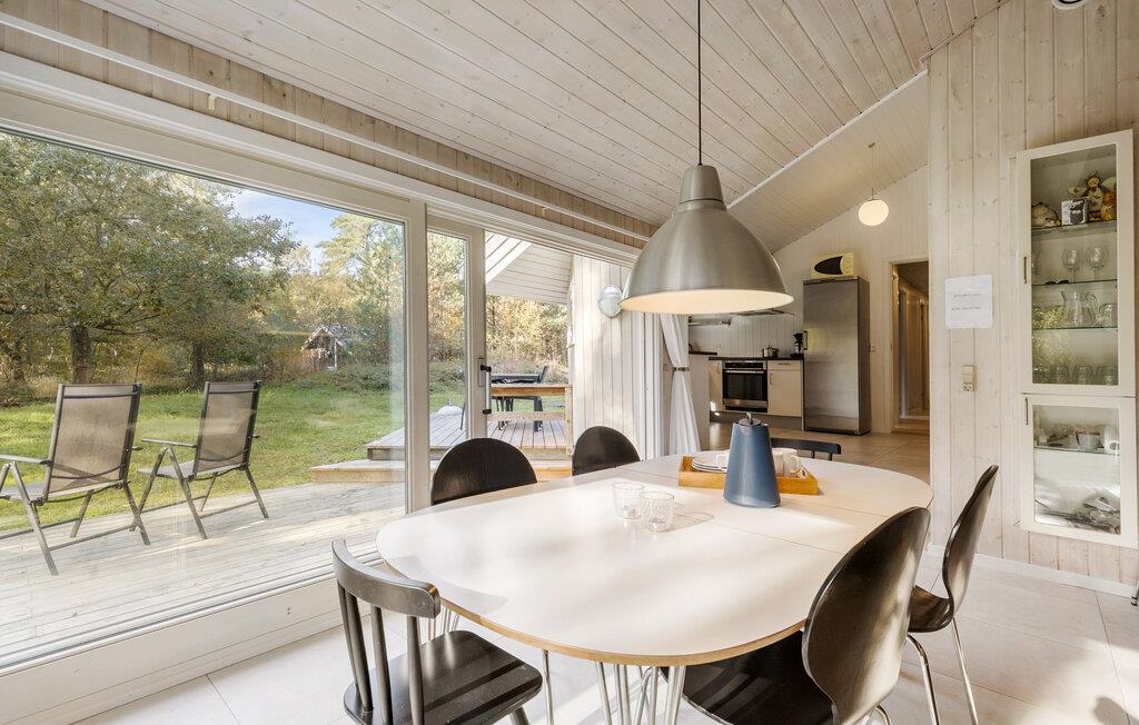 Jeres hyggelige feriehus i Dueodde tilbyder jer den komfort, I behøver for en vellykket ferie. Start dagen med morgenmad på terrassen og nyd udsigten til den private have, som giver masser af plads til afslapning og rekreation. Den lyse opholdsstue indbyder efter en aktiv dag til at slappe af på sofaen og nyde aftentimerne i ro. På køligere dage sørger brændeovnen for en behagelig varme og en afslappet atmosfære. Det moderne, rummelige køkken er ideelt til at tilberede lækre måltider, som I kan nyde i spisestuen eller på terrassen.
