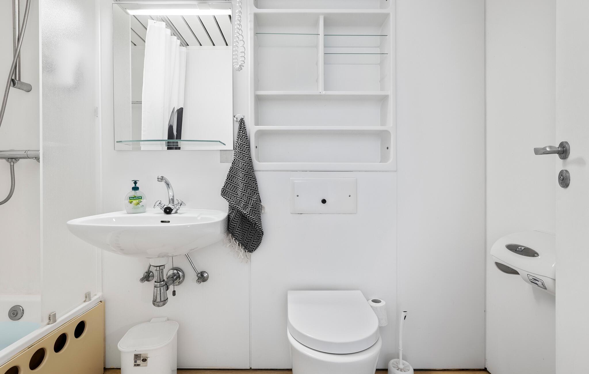 Badeværelse (nr. 1) - WC. Varmt og koldt vand. Bruser
