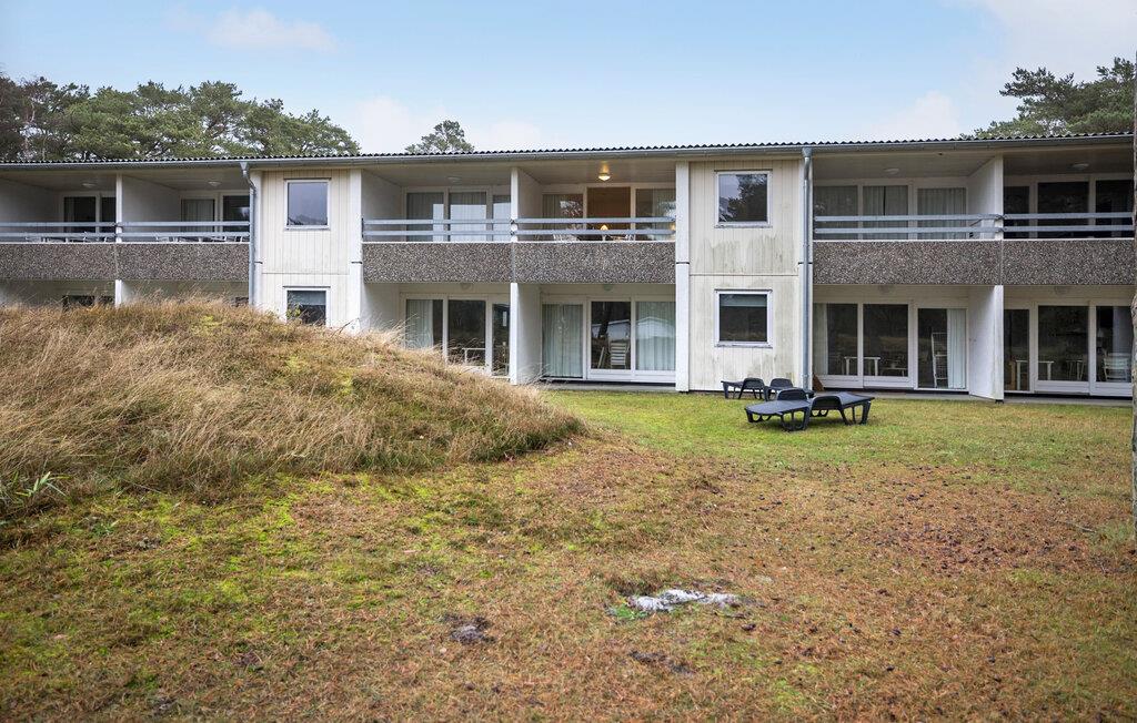 Hyggelig ferielejlighed ved Dueoddes smukke sandstrand med fælles terrasse og grønne omgivelser.