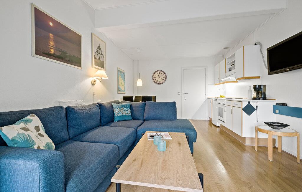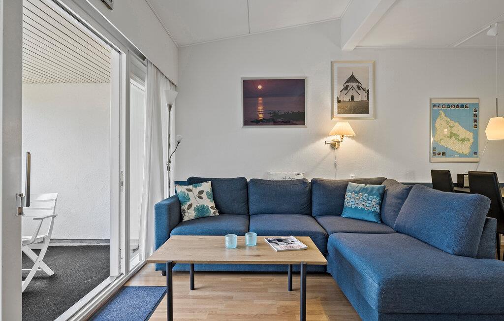 Velkommen til det behagelige, moderne indrettede opholdsområde i denne velholdte ferielejlighed tæt på stranden ved Dueodde. Glæd jer til kvalitetstid med familien, mens I gør ferieretterne klar i det moderne køkken, spiller brætspil eller hygger jer med en filmaften i den komfortable sofagruppe.
