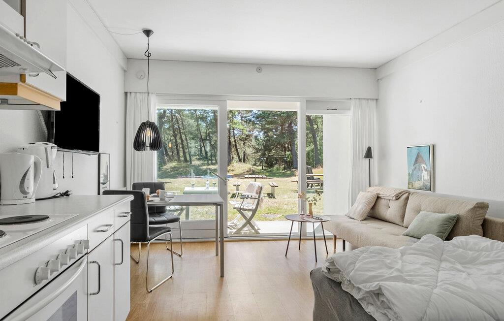 Læg hverdagens travlhed bag jer og nyd den afslappede atmosfære i denne charmerende bolig. Start dagen med en rolig morgenmad på terrassen og lad jer omfavne af den fredelige natur og den friske brise. Om aftenen indbyder den komfortable stue med den behagelige sofa til at afslutte dagen i ro og mag. Det moderne, veludstyrede køkken har alt, hvad I skal bruge for at lave jeres yndlingsretter. Nyd jeres måltider i spiseområdet eller, når vejret er godt, udenfor på terrassen.
