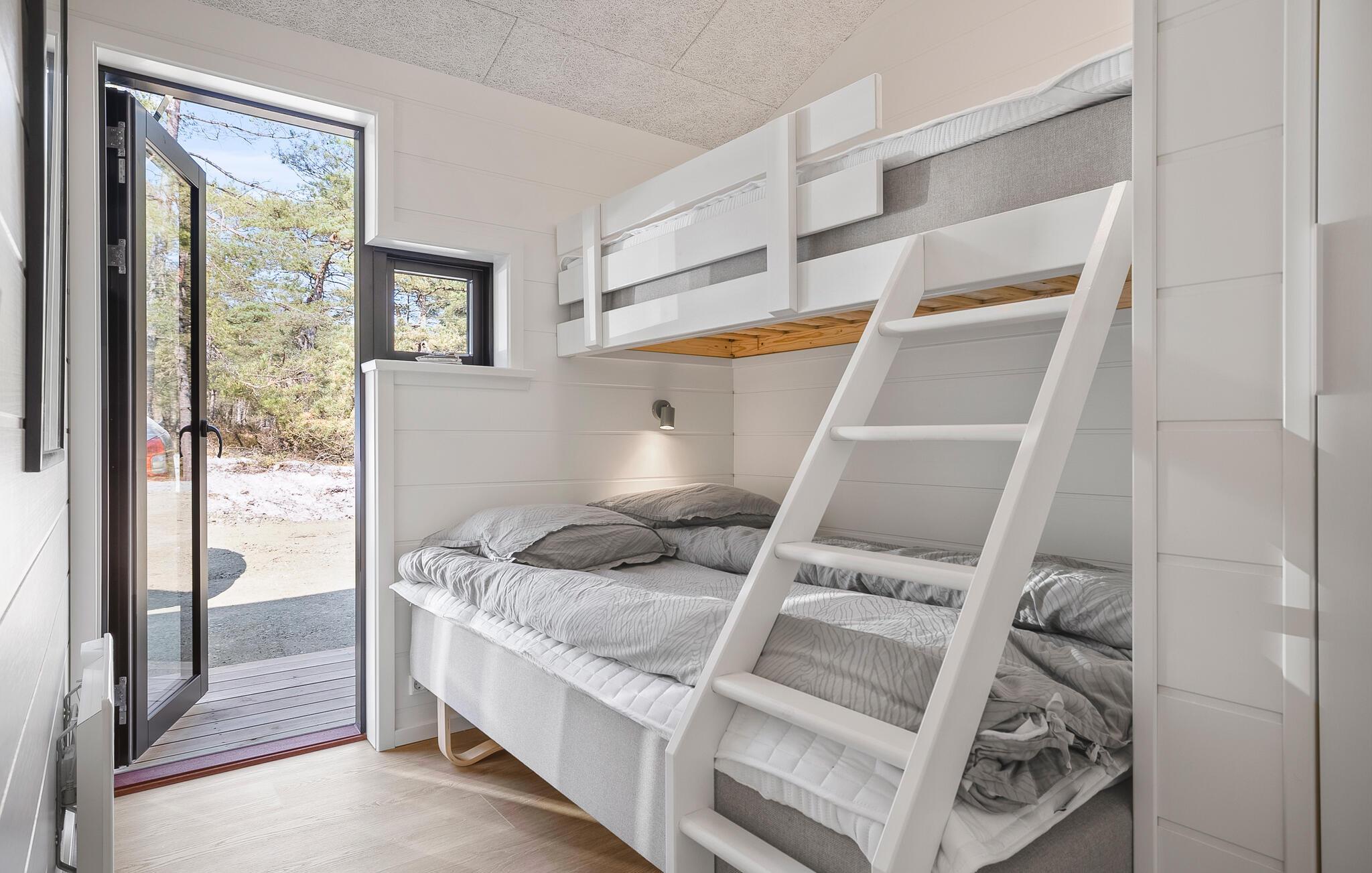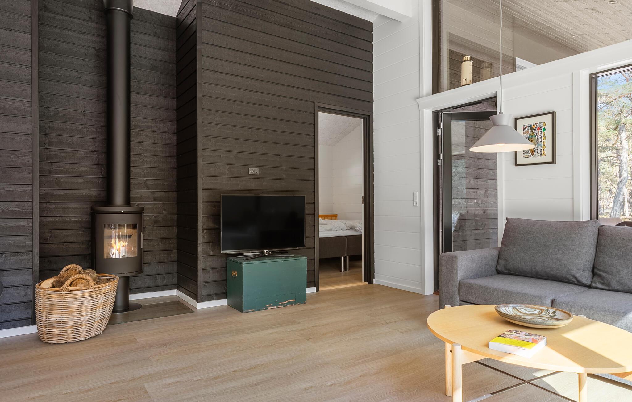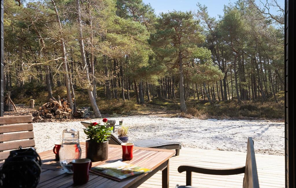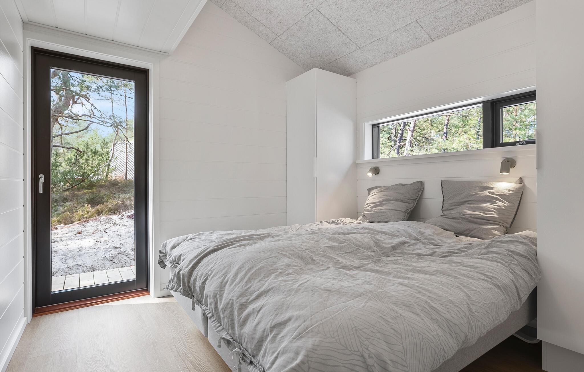 Hold en afslappende ferie i dette moderne træhus med direkte adgang til strand og skov.