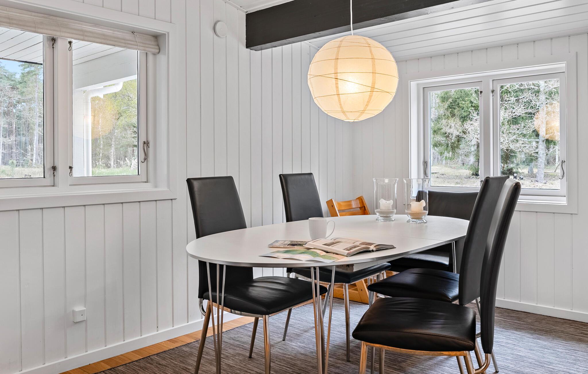 Jeres velholdte og hyggeligt møblerede sommerhus venter jer midt på en rolig naturgrund. Tilbring afslappende dage med familien og nyd den nære beliggenhed til stranden. Huset er noget særligt med sit lyse og moderne interiørdesign. Brug den åbne stue og spisestue til fælles øjeblikke, og tilbered måltiderne i det moderne køkken. Det hyggelige sofahjørne lægger op til at slappe af i denne venlige atmosfære. Saunaen på stedet tilbyder en beroligende varme, ideel til afslapning efter en dag i den friske luft. Der tilbydes også underholdning. Snup et spil bordtennis med hele familien.