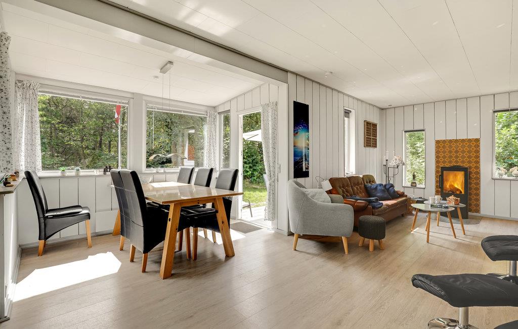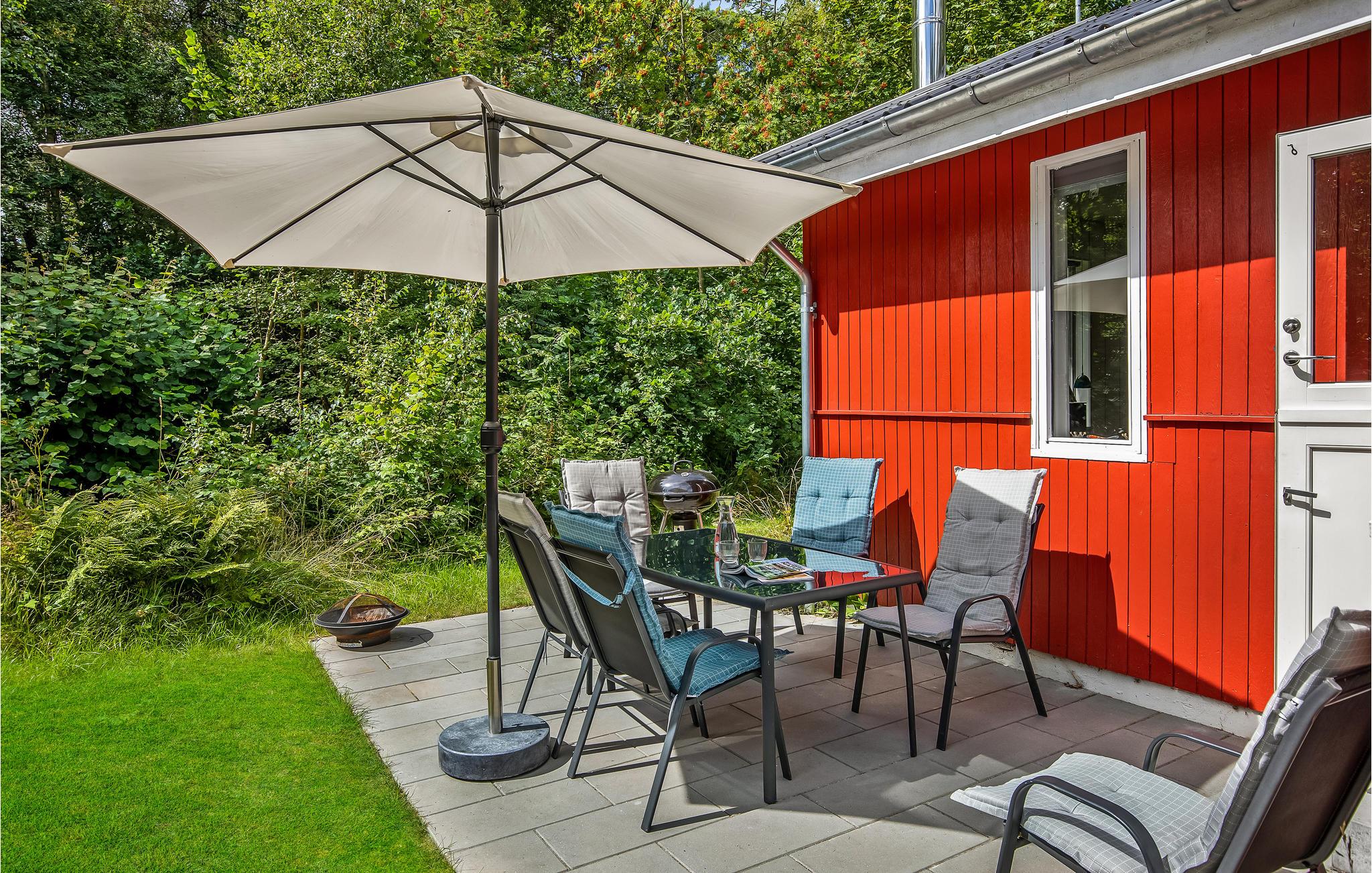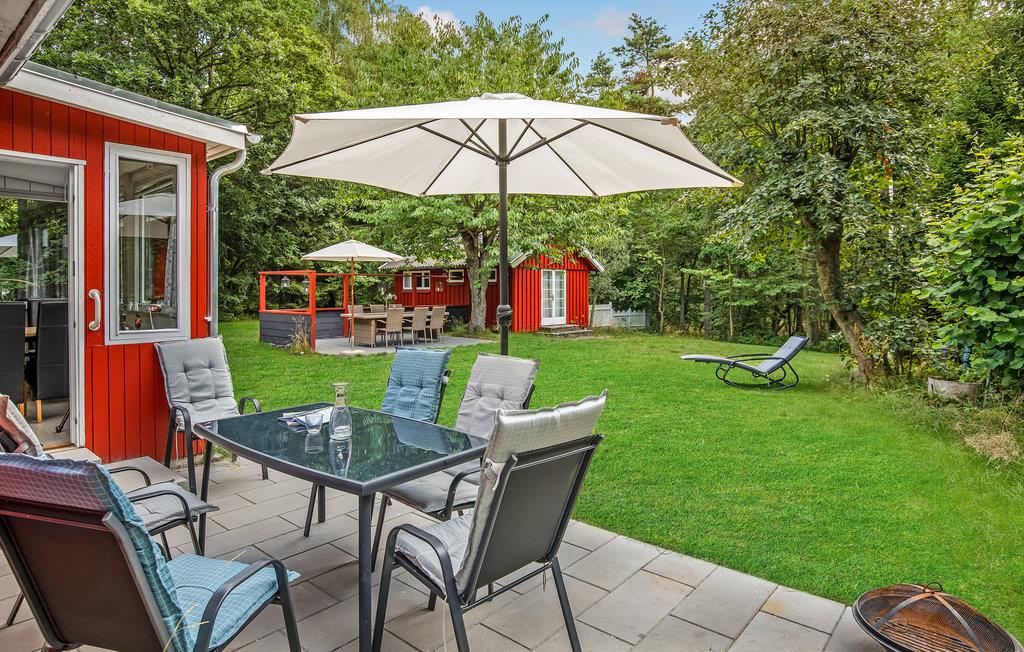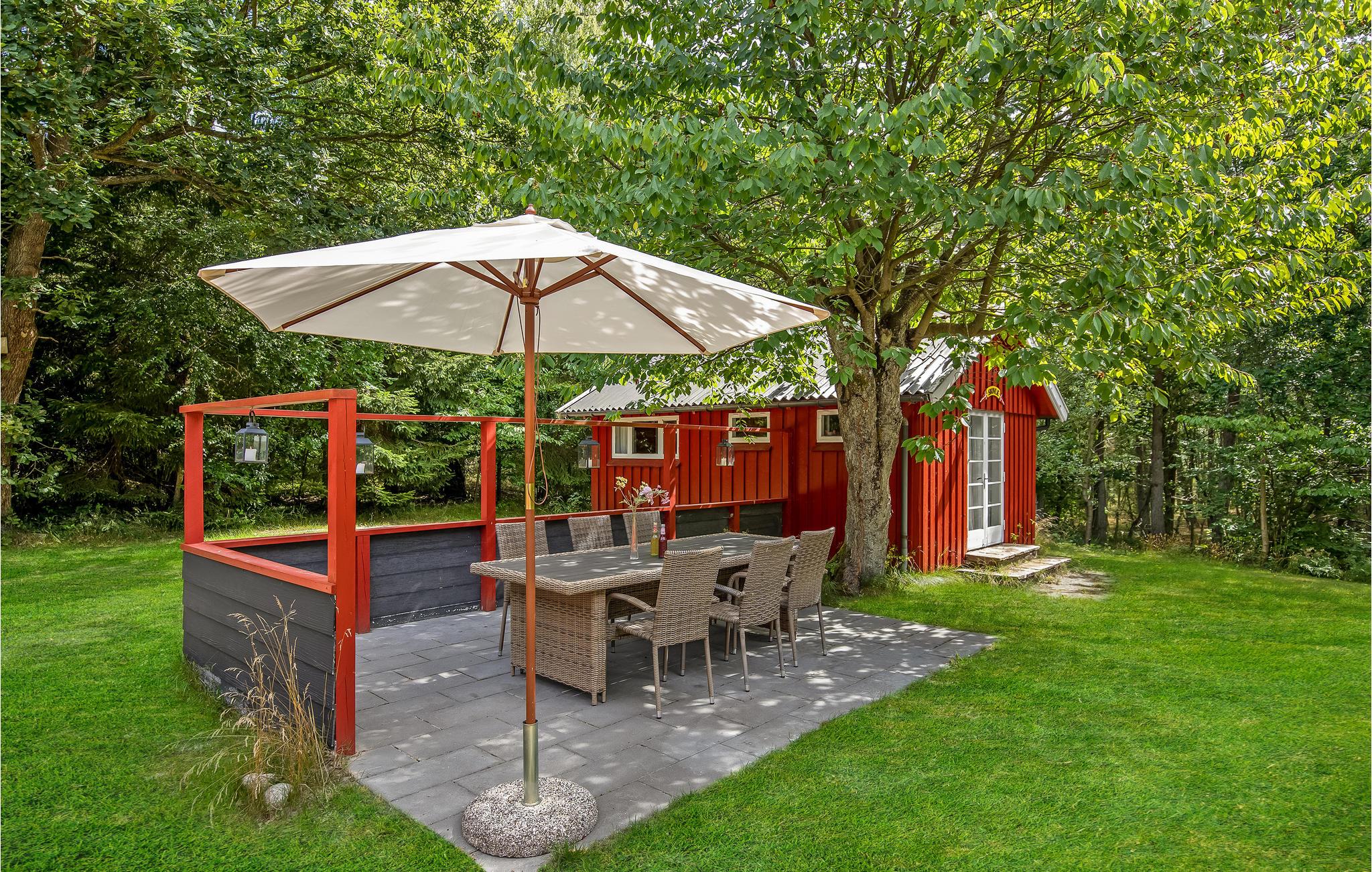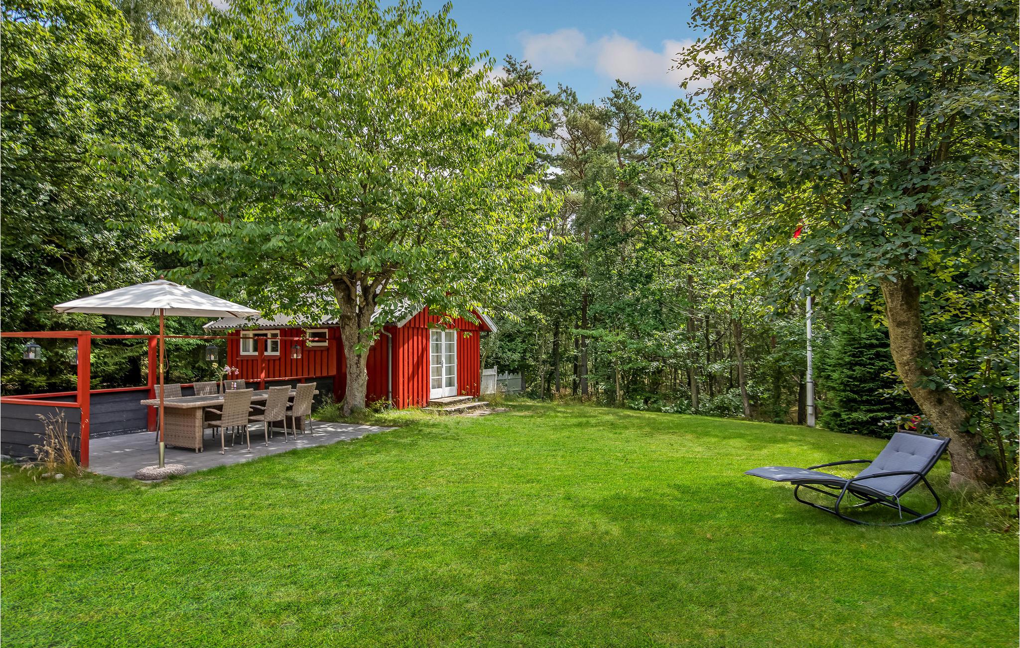 Dette hyggelige feriehus i svenskrød ligger på en rolig naturgrund, i gåafstand til stranden. Sæt jer godt til rette i de lyse, hjemligt indrettede værelser. Der er masser af plads til fælles aktiviteter, og ved måltiderne kan I nyde den smukke udsigt over det grønne. Efter en lang gåtur på stranden kan I slå jer ned ved den hyggelige brændeovn og sludre til sent ud på aftenen. Brug den store grund til leg og afslapning. Her finder I de ideelle betingelser for en harmonisk sommerhusferie i rolige omgivelser. Nyd de lange sommeraftener på terrassen, måske med noget lækkert fra grillen. Gå en tur til havet og nyd strandlivet. Fiskerlejet Snogebæk kan nemt nås til fods eller på cykel.