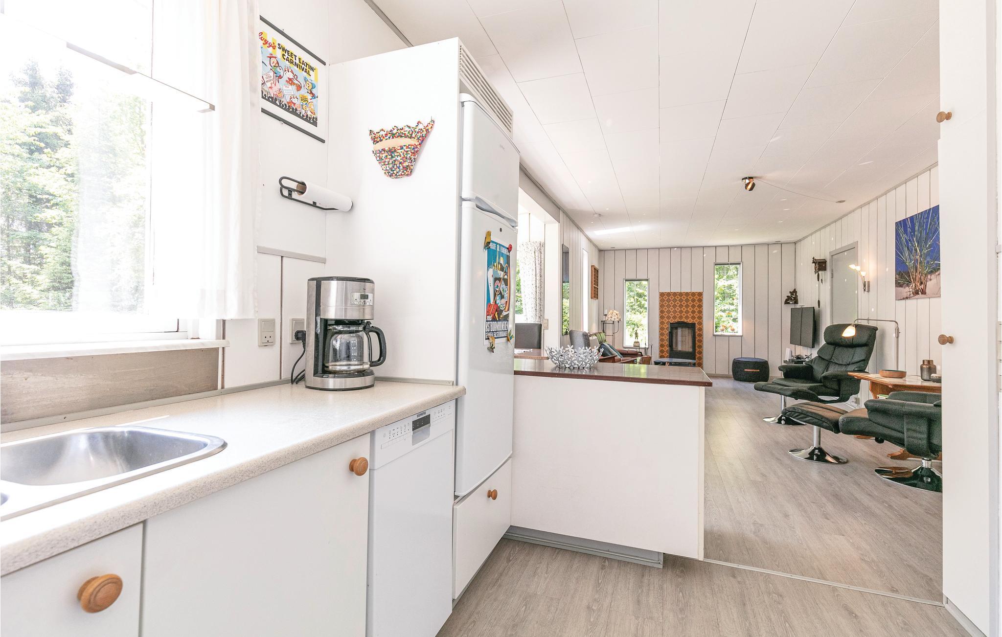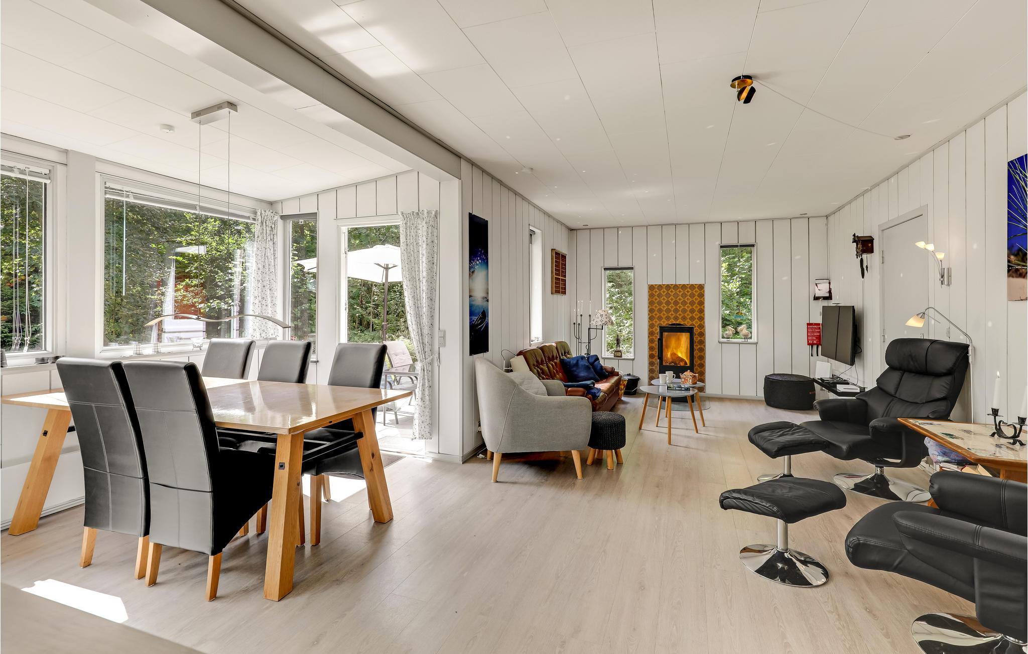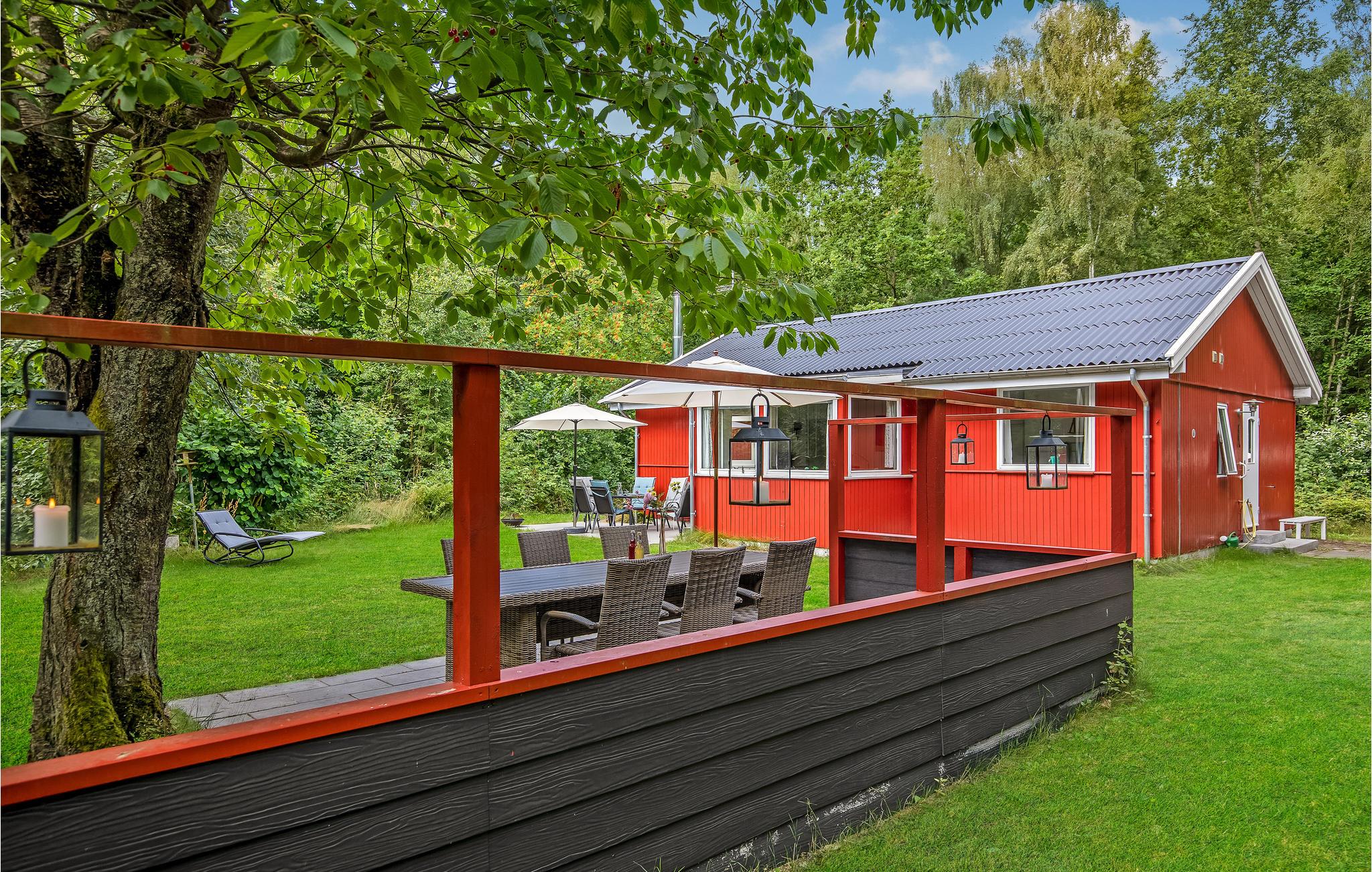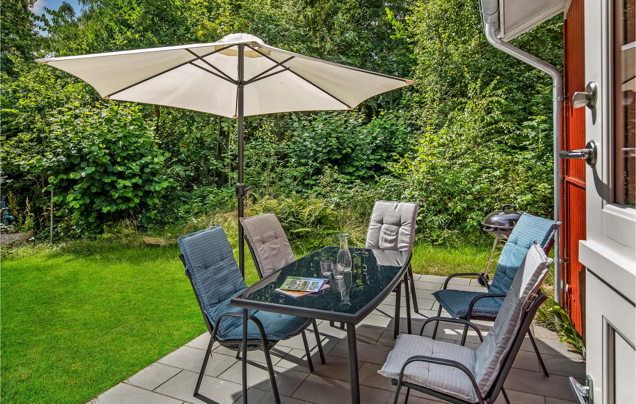 Dette hyggelige feriehus i svenskrød ligger på en rolig naturgrund, i gåafstand til stranden. Sæt jer godt til rette i de lyse, hjemligt indrettede værelser. Der er masser af plads til fælles aktiviteter, og ved måltiderne kan I nyde den smukke udsigt over det grønne. Efter en lang gåtur på stranden kan I slå jer ned ved den hyggelige brændeovn og sludre til sent ud på aftenen. Brug den store grund til leg og afslapning. Her finder I de ideelle betingelser for en harmonisk sommerhusferie i rolige omgivelser. Nyd de lange sommeraftener på terrassen, måske med noget lækkert fra grillen. Gå en tur til havet og nyd strandlivet. Fiskerlejet Snogebæk kan nemt nås til fods eller på cykel.