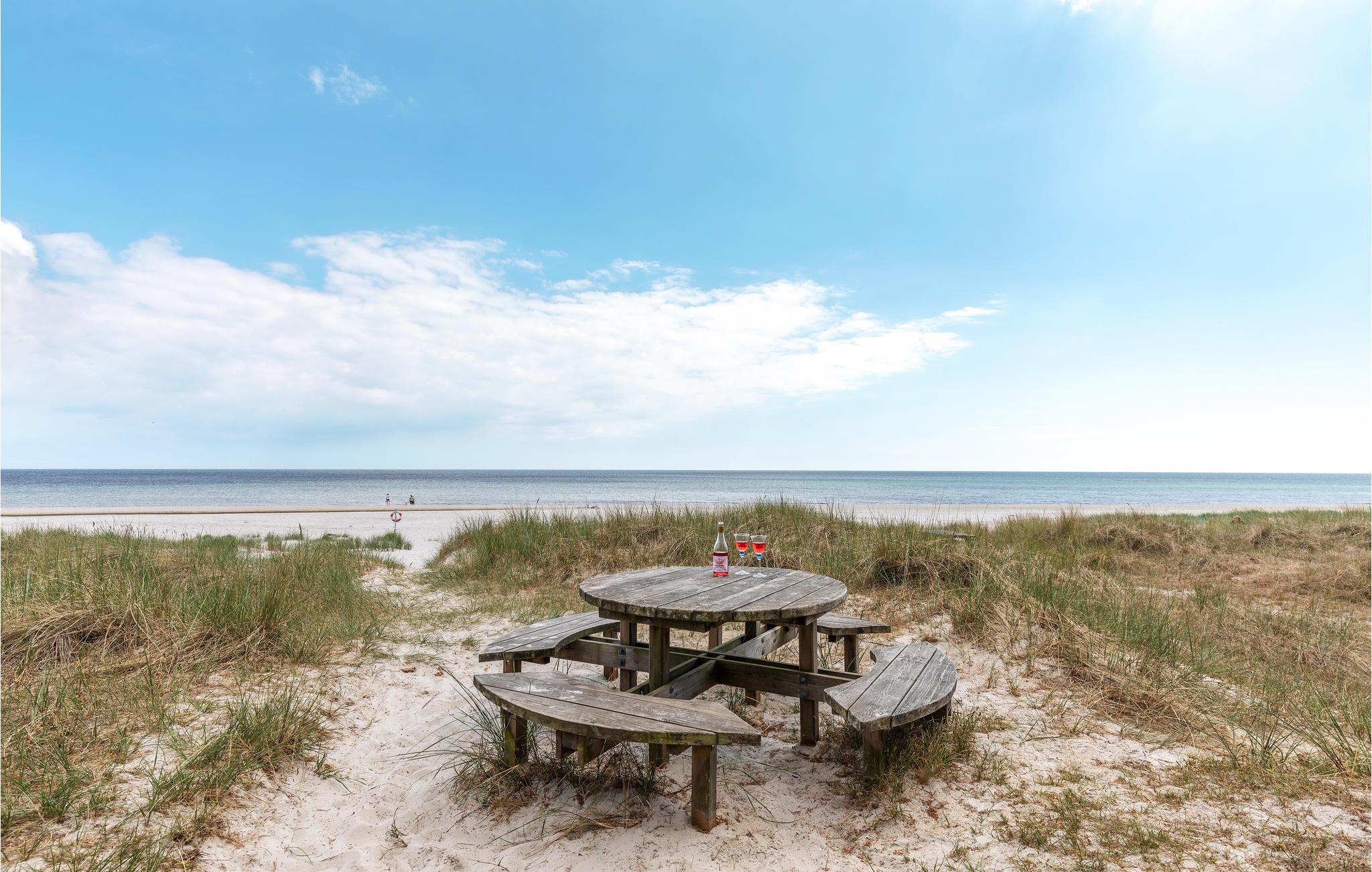 Hyggeligt og skønt beliggende feriehus 2. række til dejlig sandstrand. Huset ligger i gå afstand til een af de bedste sandstrande på øen, og som en del af et større feriecenter med ca. 50 feriehuse. Området er meget børnevenligt med bl.a. fælles legeplads, boldbane og udendørs swimmingpools. Dette hyggelige feriehus er pænt indrettet, og fra stuen er der direkte adgang til en dejlig terrasse hvor I kan nyde ferien i de nydelige havemøbler. Trænger I til en tur i havet, så er det bare at iklæde sig badetøj og et håndklæde over skulderen. Er I til motion, så er en travetur langs stranden en absolut nydelse for hele familien. I fællesbygningen er der bordtennisrum, fælles vaskerum mod betaling og internetadgang. Der er både en børne- og en voksen swimmingpool (udendørs) tilknyttet Dueodde Ferieby, og disse udendørs pools er opvarmet i perioden ca. 15. juni - ca. 1. september.
