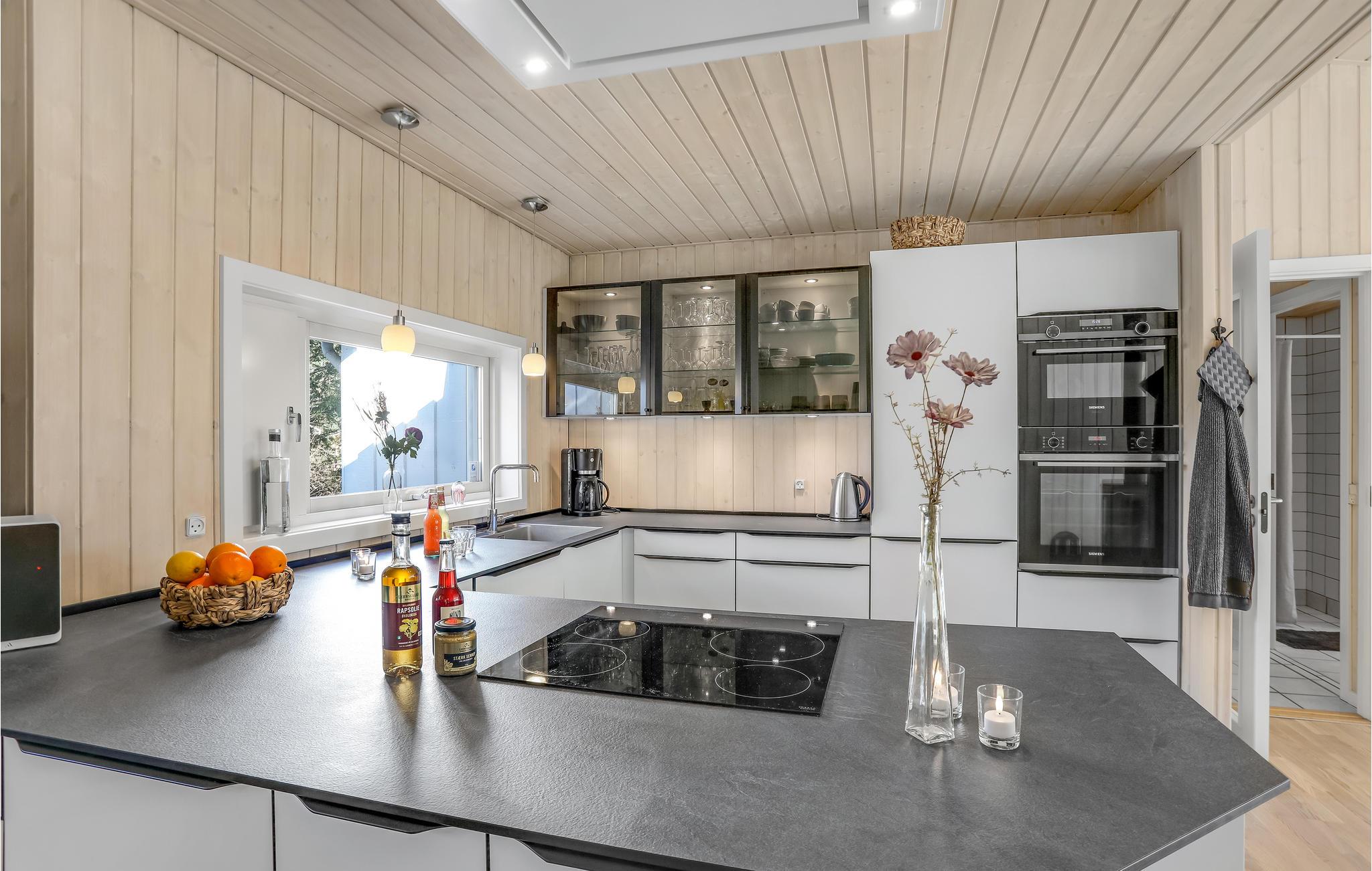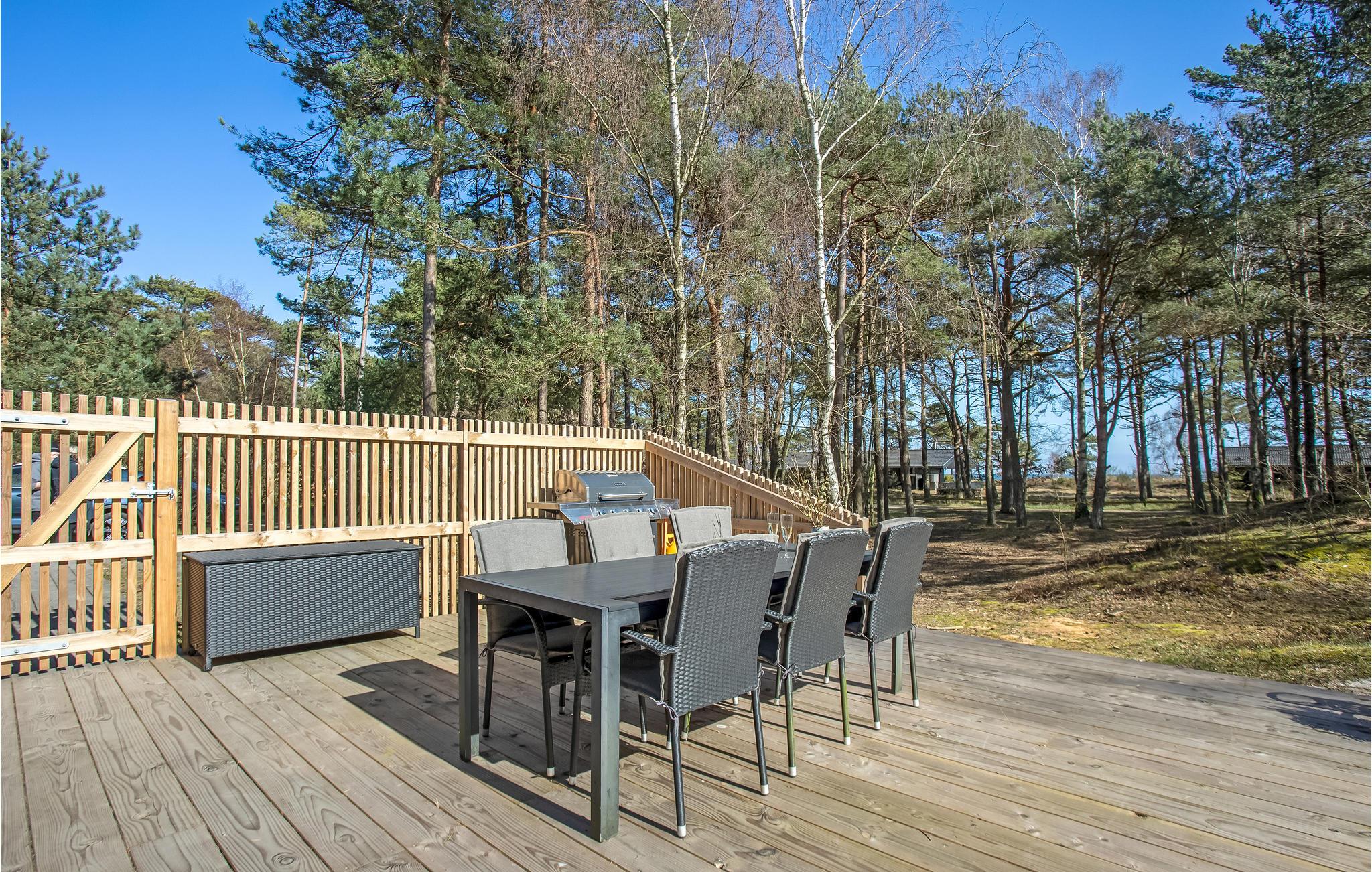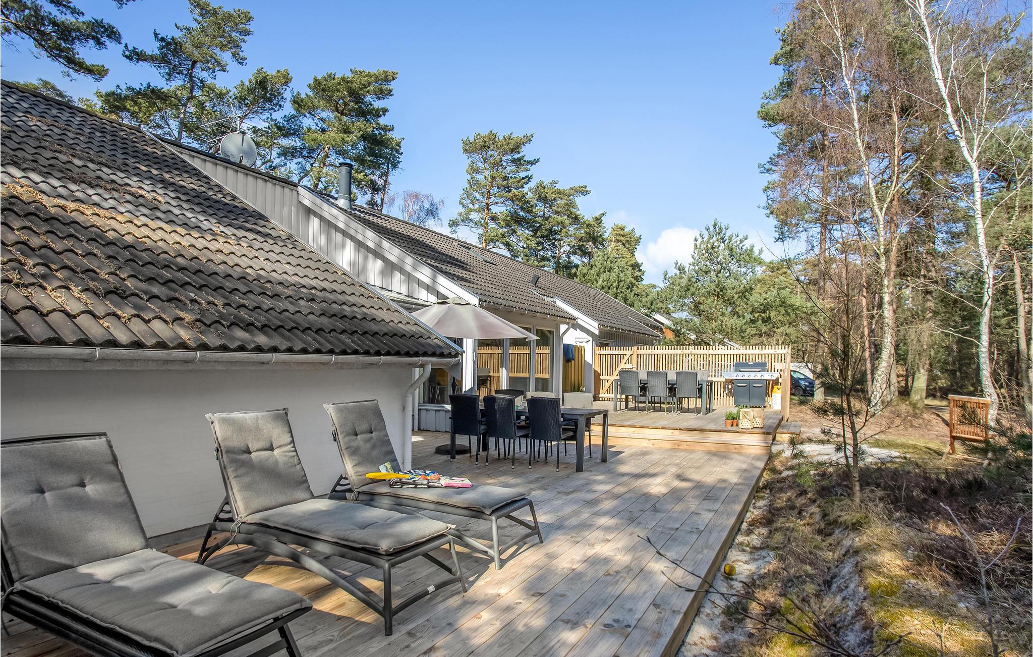 Velkommen til dette indbydende feriehus ca. 200 m fra den hvide sandstrand i Dueodde. Huset er lyst og nydeligt indrettet med 5 store soveværelser, 2 badeværelser og en stor hems til børnene. Fra det åbne køkken er der adgang til en hyggelig spise- og opholdsstue med komfortable møbler, brændeovn og varmepumpe. Fra opholdsstuen er der udgang til en flot havestue, der fører ud til den store træterrasse, hvor ferien kan nydes med havudsigt og grillmad. Havestuen fører også videre til den store separate poolafdeling, hvor børn og barnlige sjæle kan lege og svømme rundt, nyde lidt massage i spabadet eller tage en tur i saunaen. Udenfor er der et legehus med rutsjebane og gynger, hvor børnene virkelig kan brænde krudt af.
