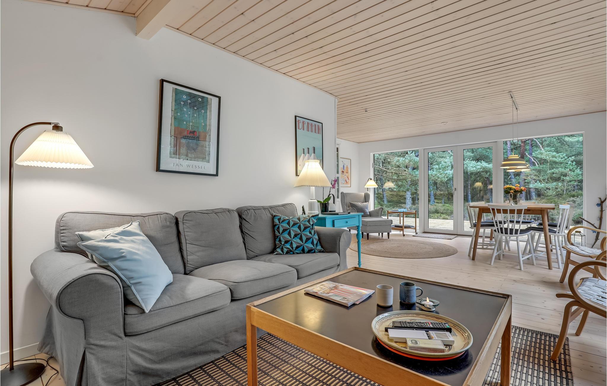 I 1. række til god sandstrand ligger dette hyggelige og veludstyrede sommerhus med udsigt til smuk natur.Huset er lyst indrettet med bl.a. nyere åbent køkken og en hyggelig opholdsstue med pæne møbler, brændeovn og en nydelig spisestue. Her er også gratis fibernet. Pænt badeværelse og soveværelser. Fra stuen er der udgang til en dejlig stor træterrasse, hvor I kan sidde i de komfortable havemøbler og bare nyde freden og roen, og rigtig feriehygge. Dette dejlige sommerhus har sin helt egen charme og ligger på en stor naturgrund, og med egen sti til stranden. I området er også gode cykelveje, muligheder for vandre- og løbeture, ligesom der herller ikke er langt til Dueodde Golfbane, hvor de 18-huller giver god motion og frisk luft.
