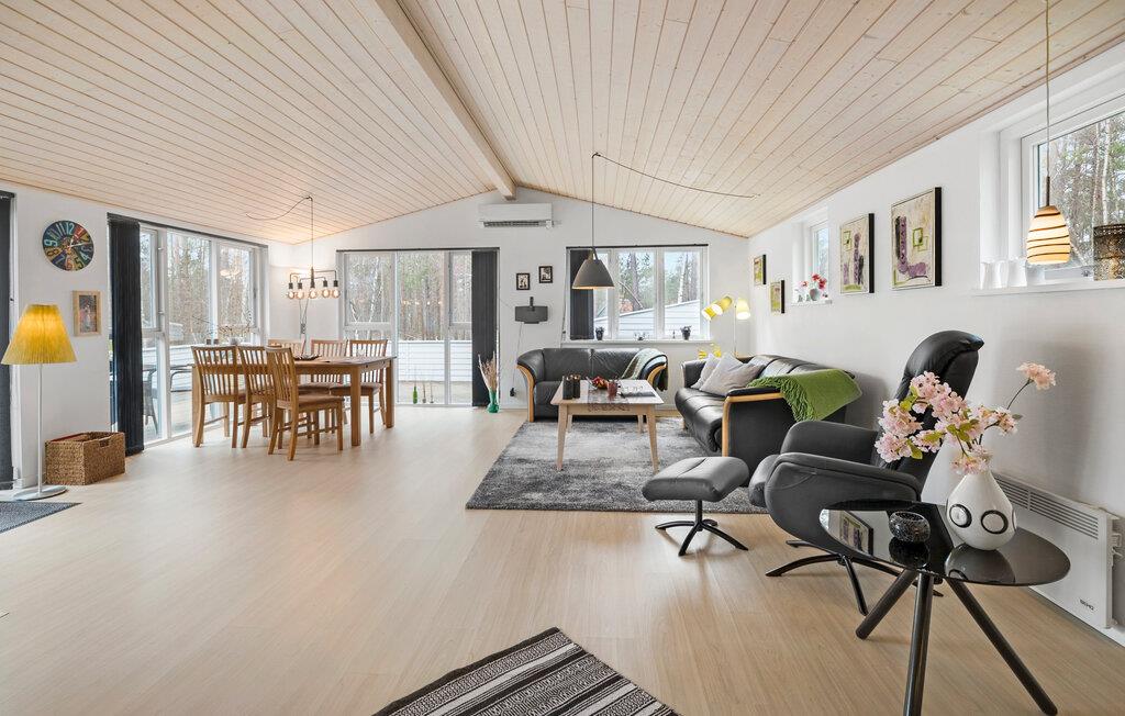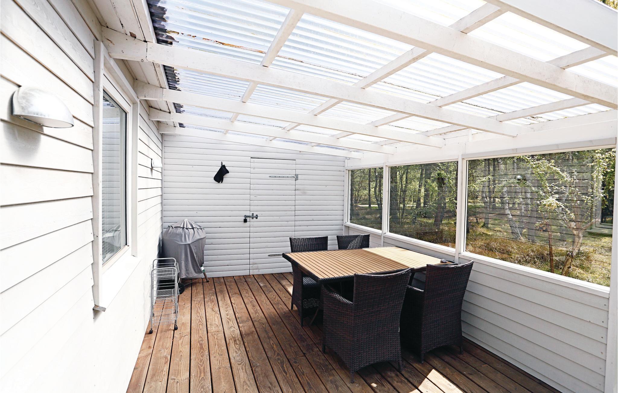 Nydeligt renoveret træferiehus beliggende i flot natur og gåafstand til en dejlig sandstrand. Det pæne feriehus fremtræder overalt lyst og venligt og indeholder bl.a. et flot og moderne, åbent køkken samt et lækkert badeværelse med gulvvarme. To pæne soveværelser med komfortable senge. Fra opholdsstuen med brændeovn er der adgang til en stor træterrasse, hvor de mange feriestunder kan nydes med udsigt til den flotte natur. Huset ligger i rolige omgivelser i et attraktivt sommerhusområde.