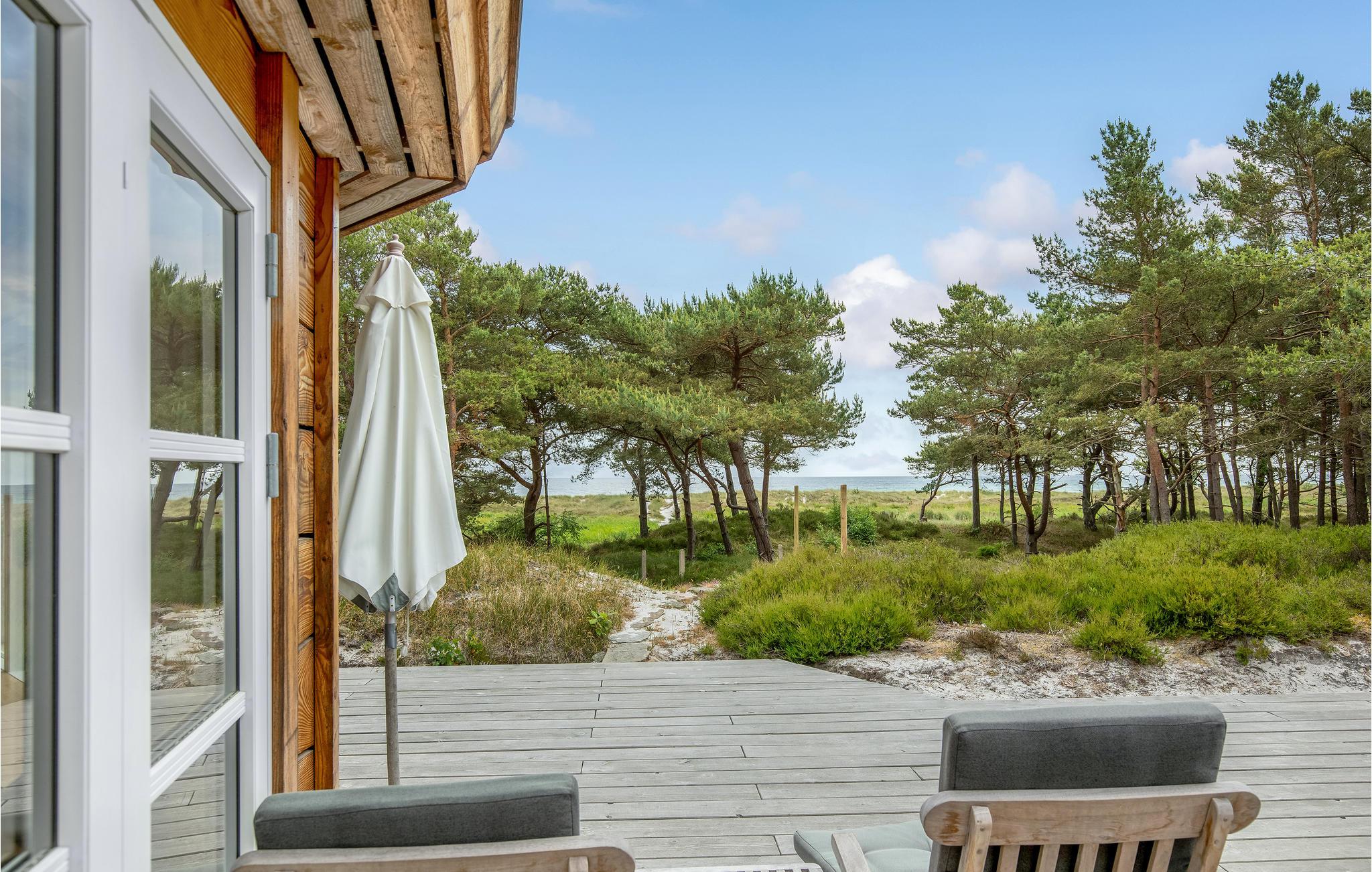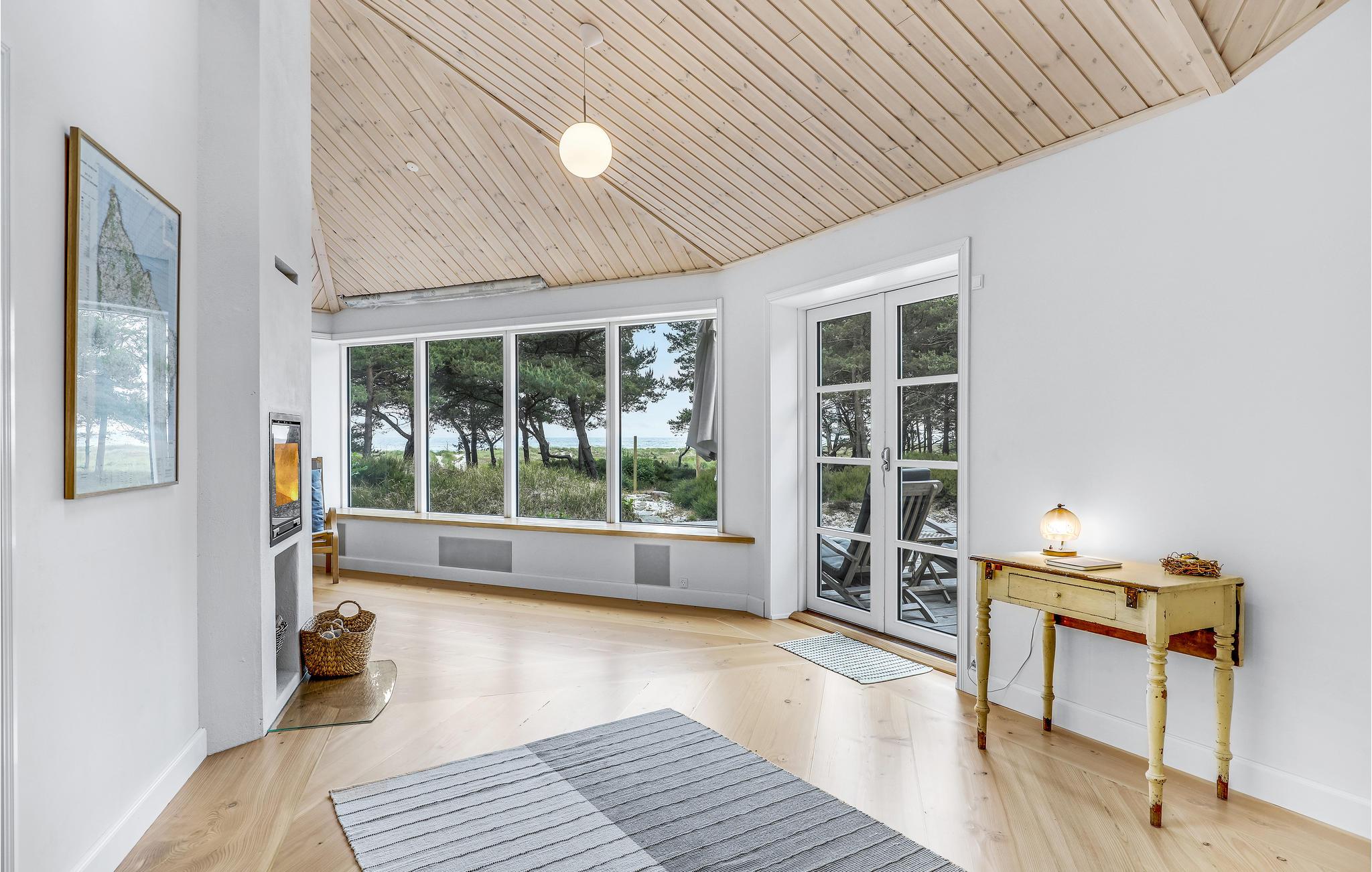Charmerende træsommerhus i 1. række til sandstrand med havudsigt og privat sauna, perfekt til en unik ferieoplevelse på Bornholm.