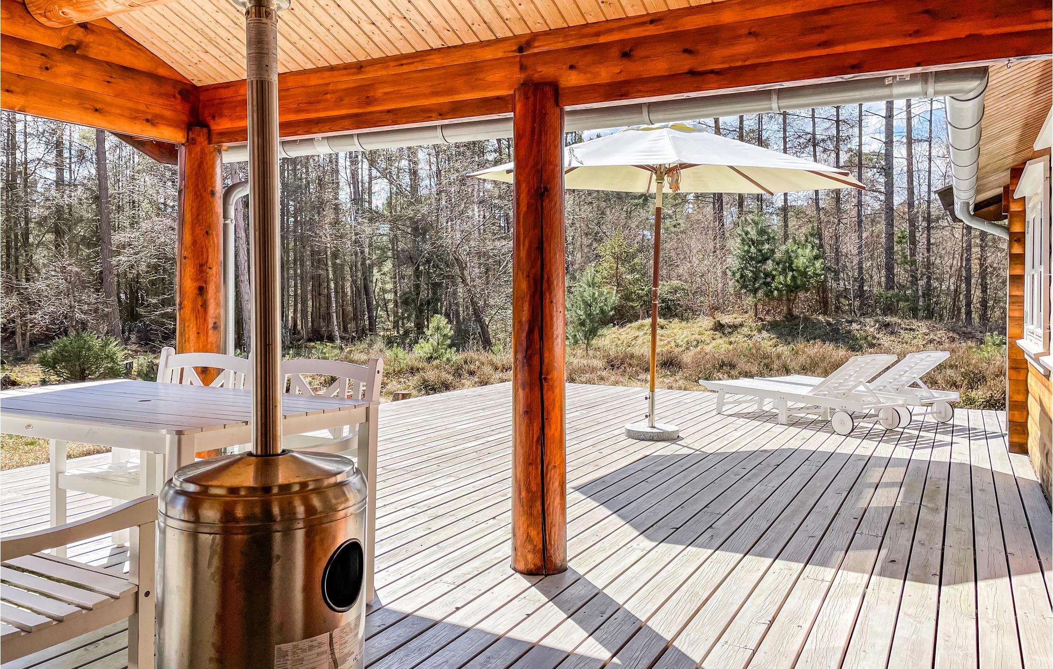 En stor del af jeres ferie kommer til at foregå på den pragtfulde, delvist overdækket træterrasse. Her finder I diverse komfortable havemøbler - herunder liggestole til solbadning - en skøn hængekøje og en gasgrill, så I kan tilberede lækre grillretter. Til huset hører også en udebruser, som er perfekt til at skylle sandet af jer, når I vender hjem fra en strandtur.